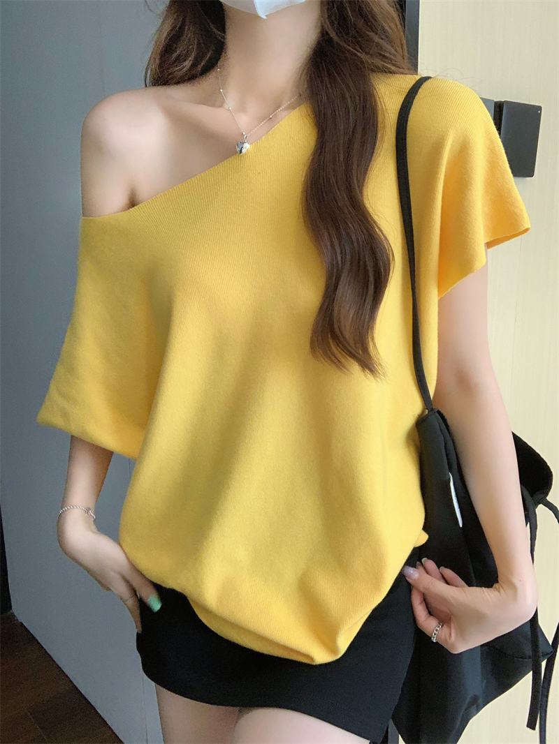 새로운 사각형 칼라 드로 스트링 디자인 슬림하고 긴 소매 단수 단색베이스 니트 상단