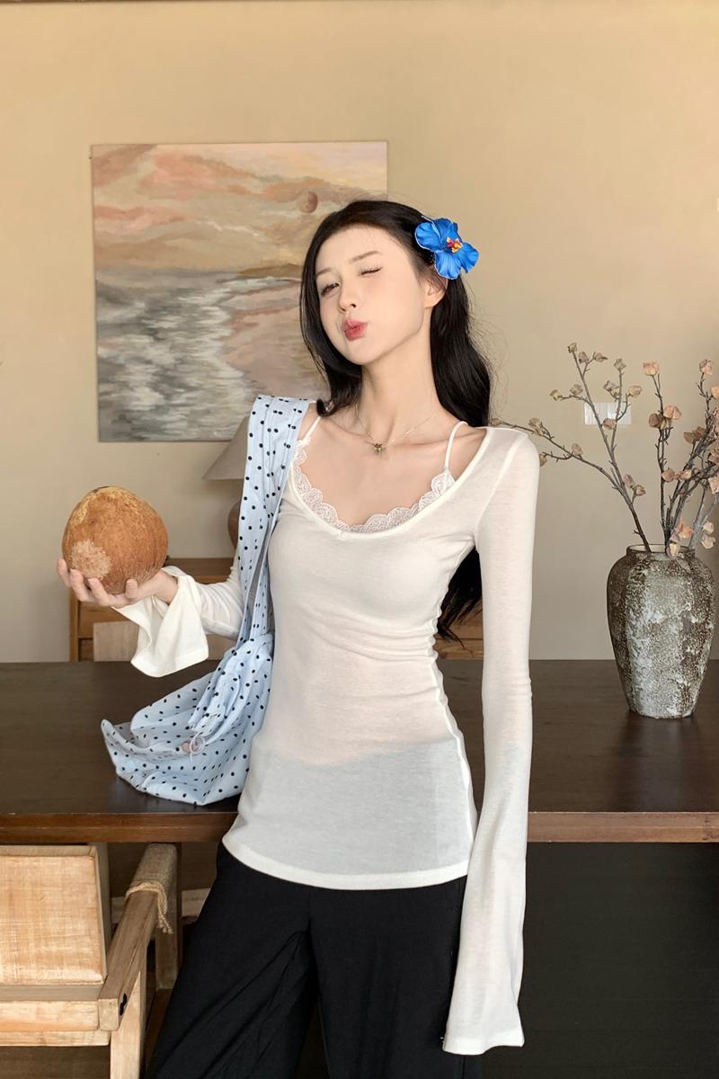 2025 스프링 여름 느슨한 간단한 다재다능한 눈송이 면화 긴팔베이스 셔츠 티셔츠 탑
