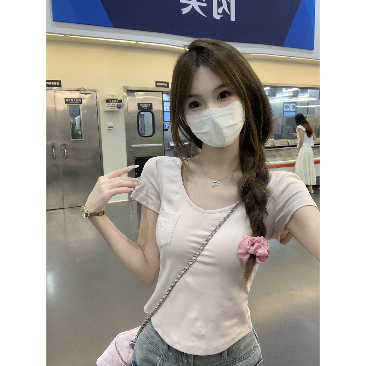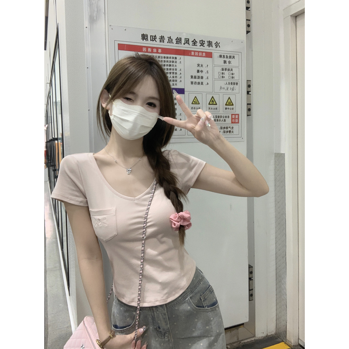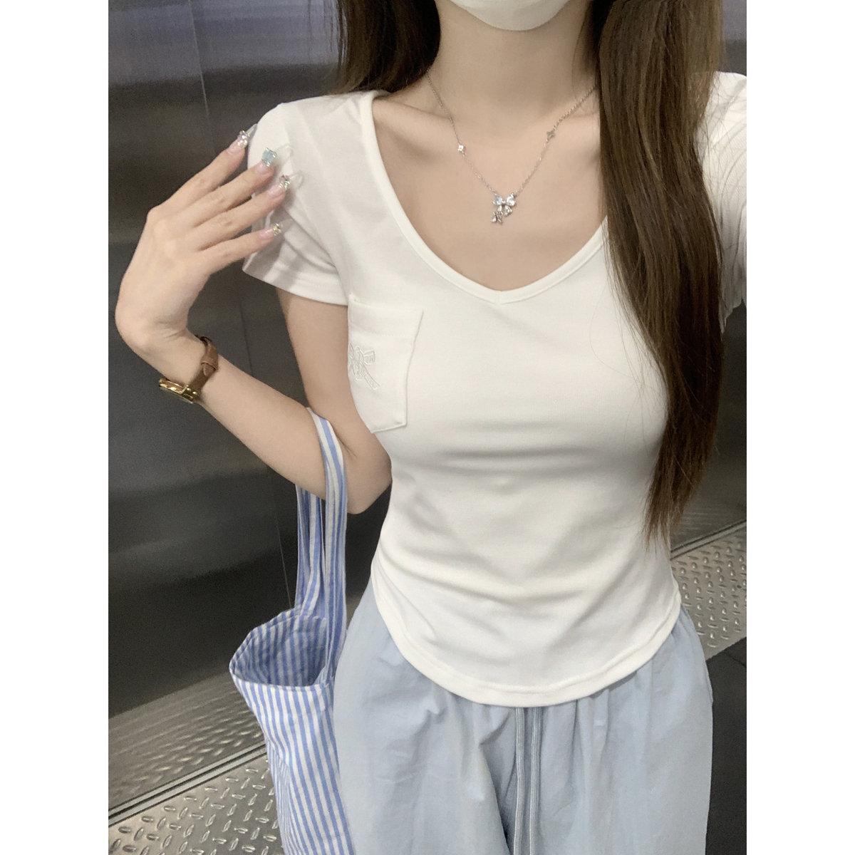 스프링 스프링 슬림 생선 뼈 디자인 느낌 장거리 소매베이스 여성 티셔츠 탑