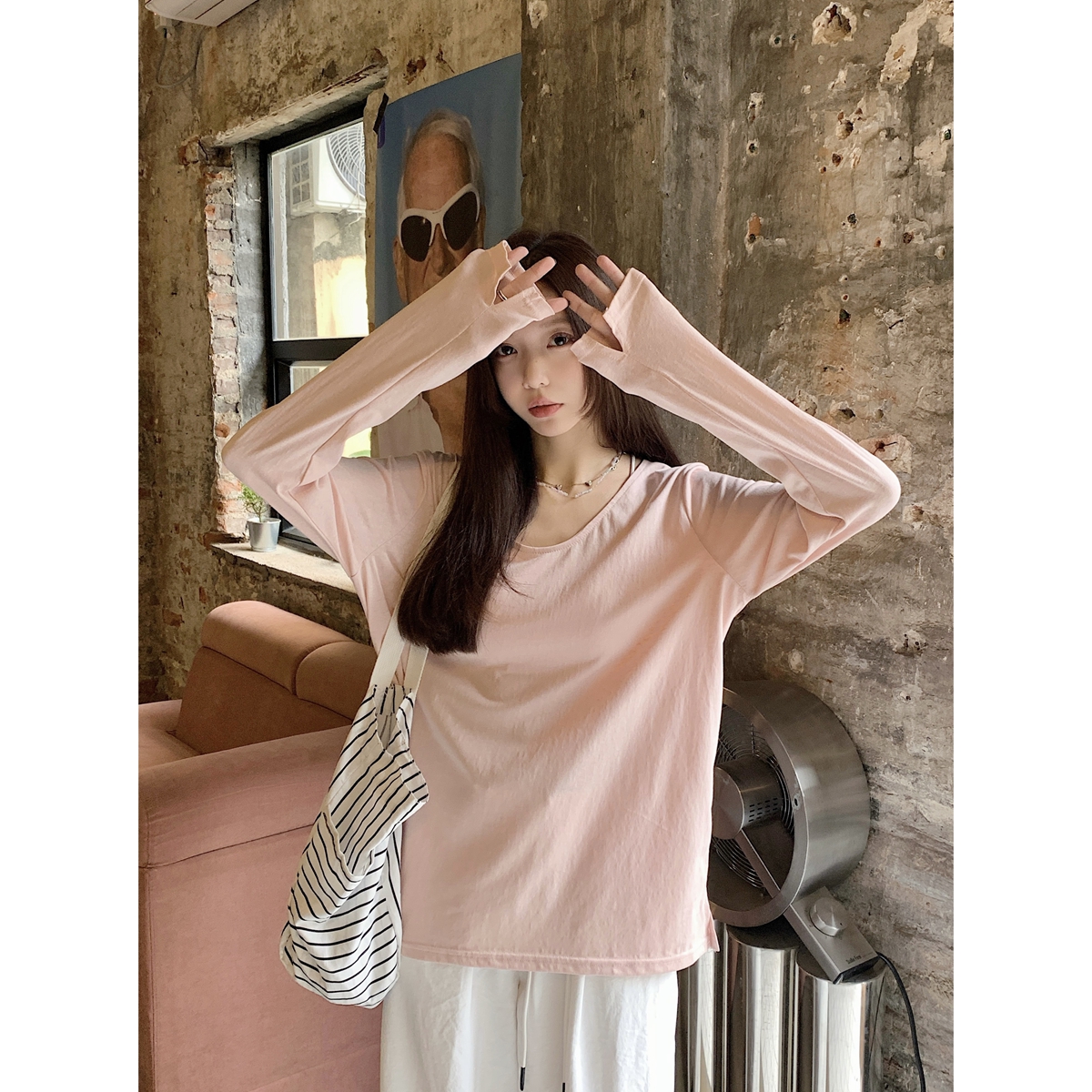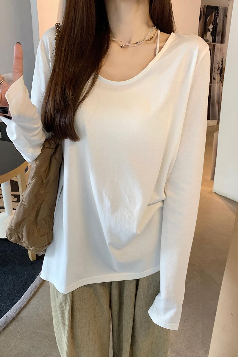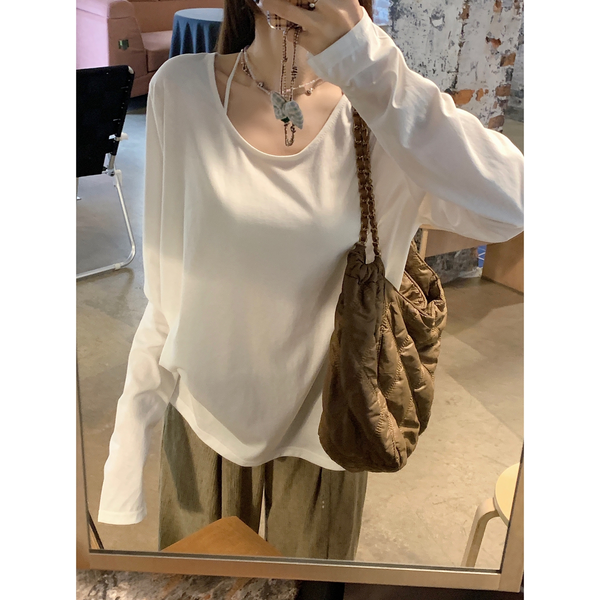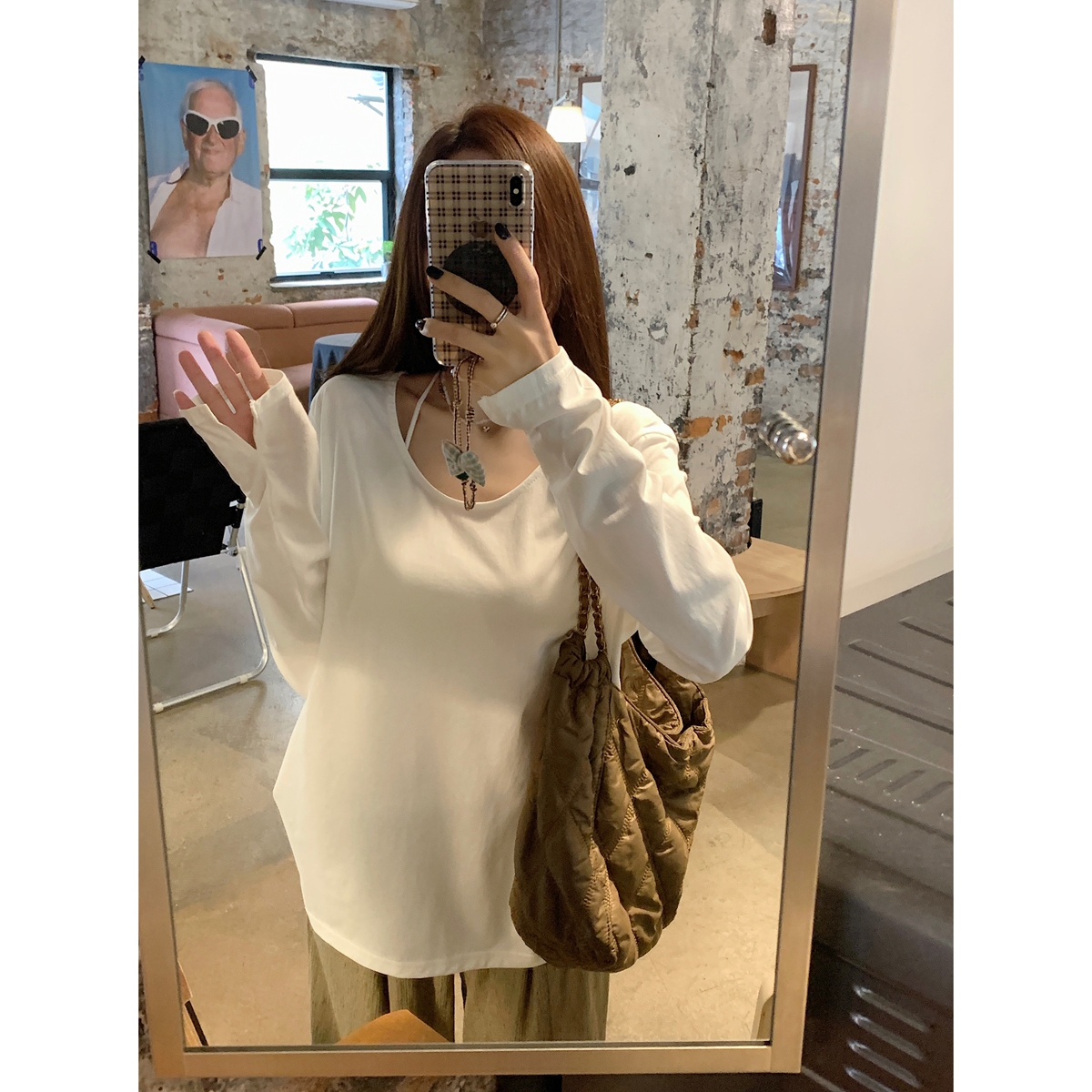 여름 한국어 버전 느슨하고 게으른 U-Neck은 흰색 슬림하고 다재다능한 눈송이면 단락 티셔츠 탑입니다.