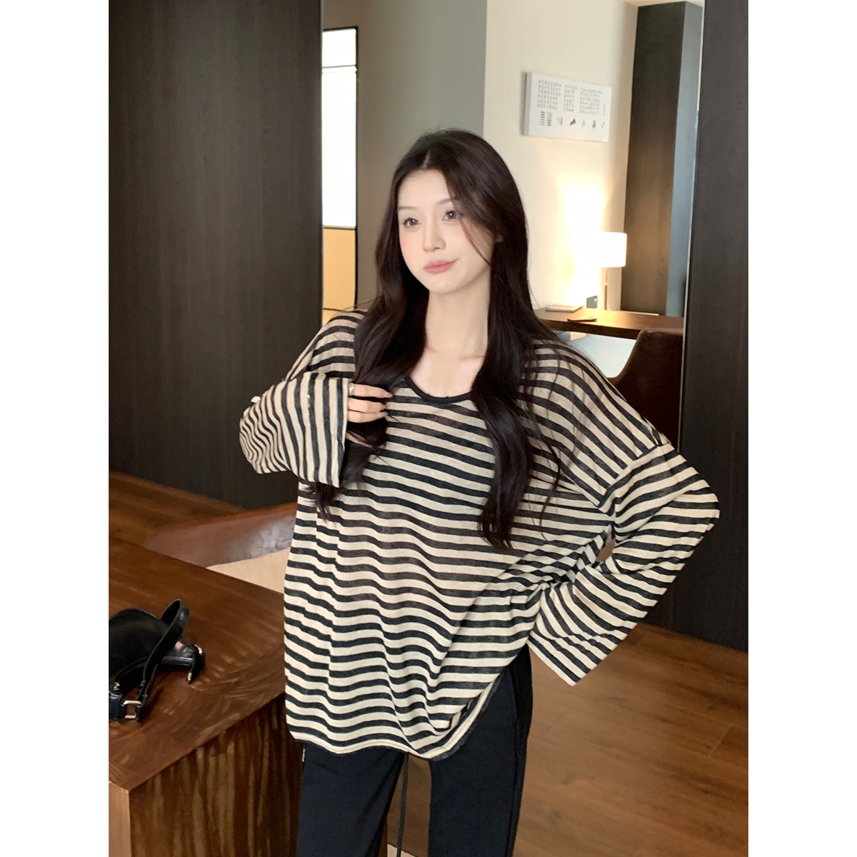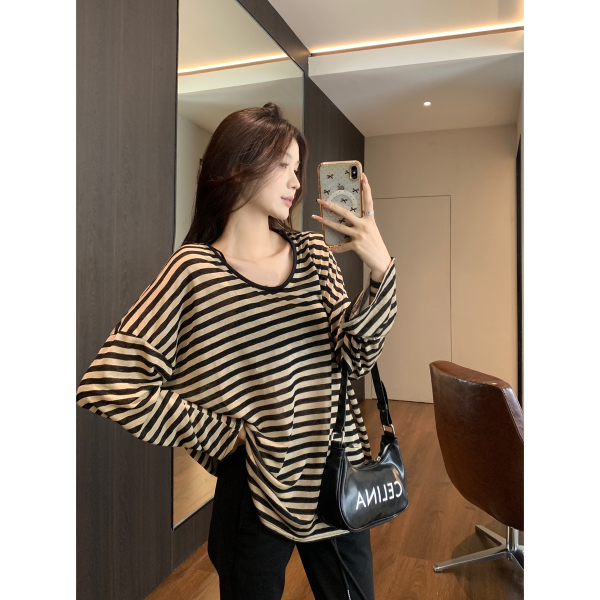 색상 : 검은 색 살구 줄무늬