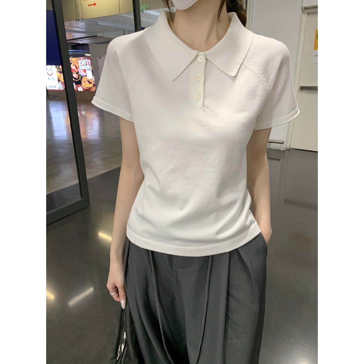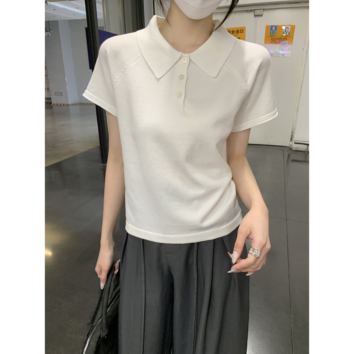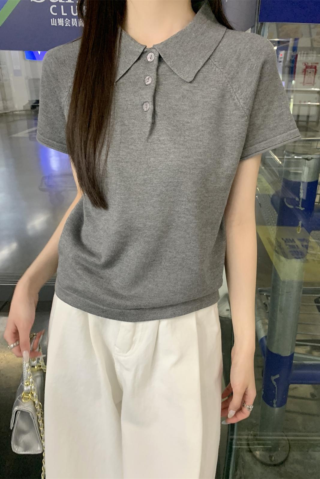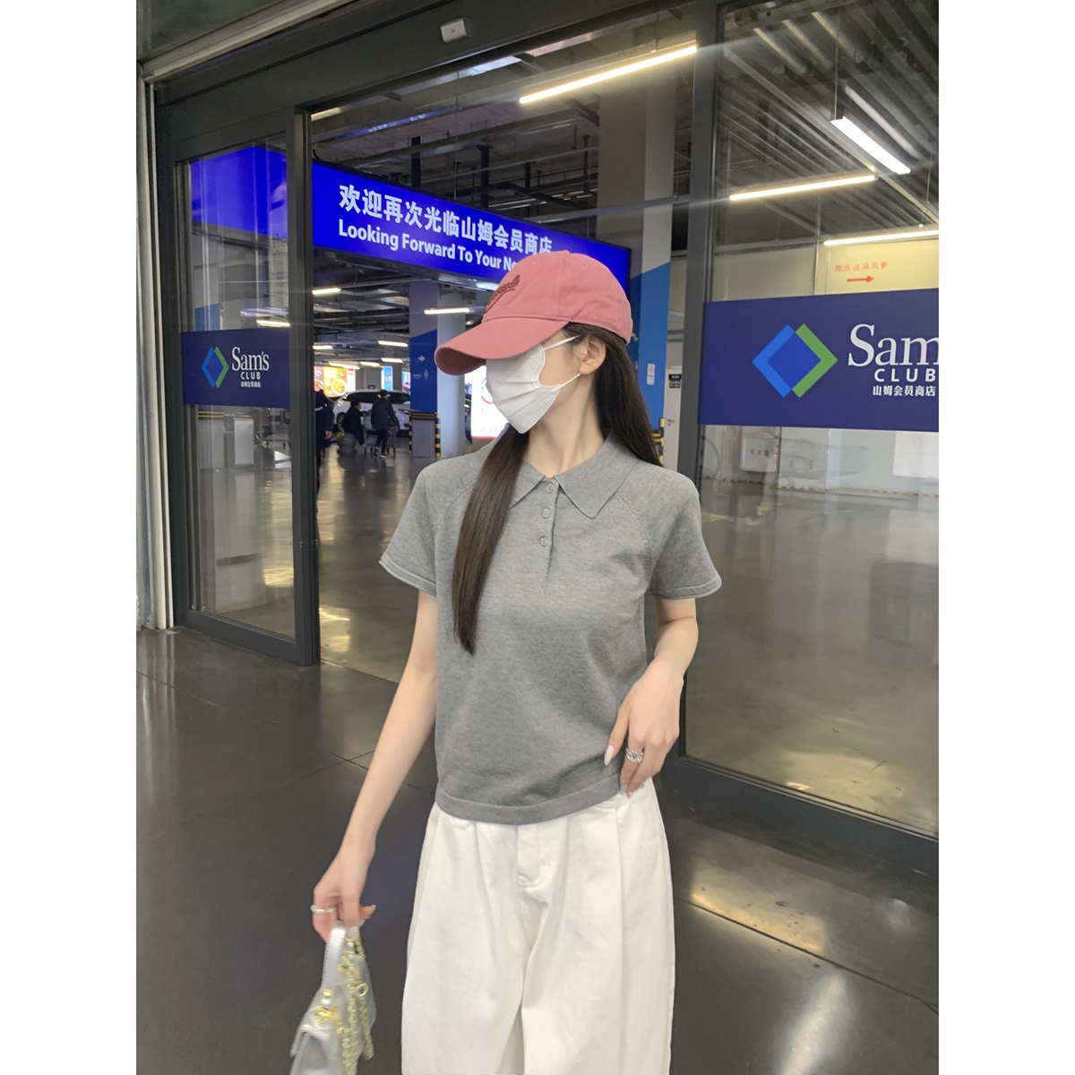 여름 V- 넥 기질 대비 색상 2 피스 디자인 감각 순수한면 단락 티셔츠 여성.