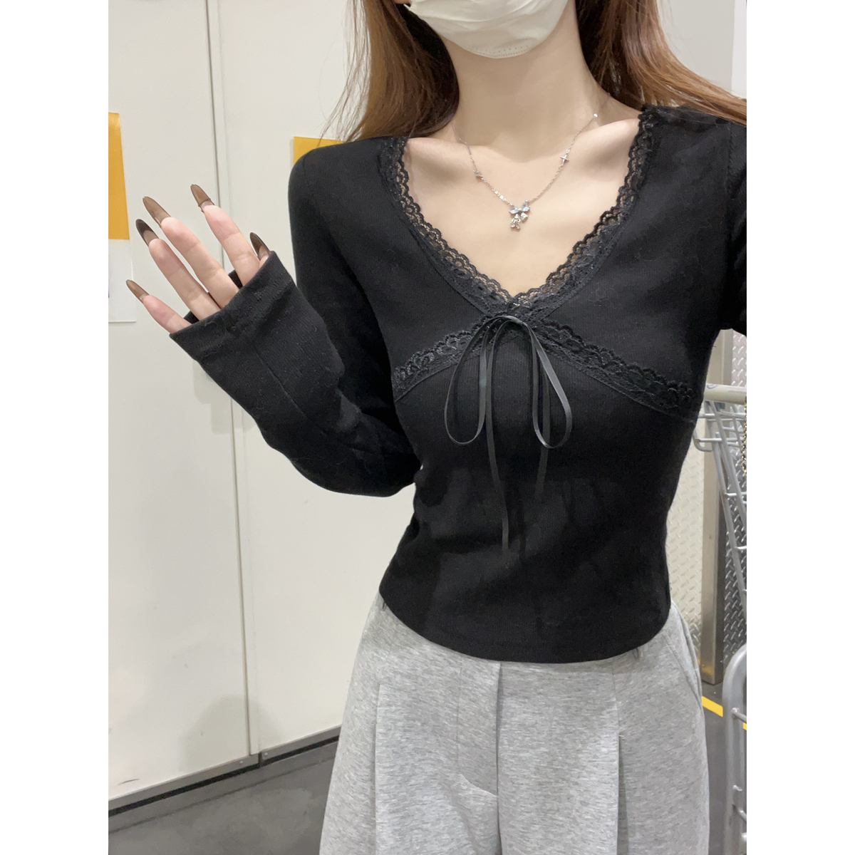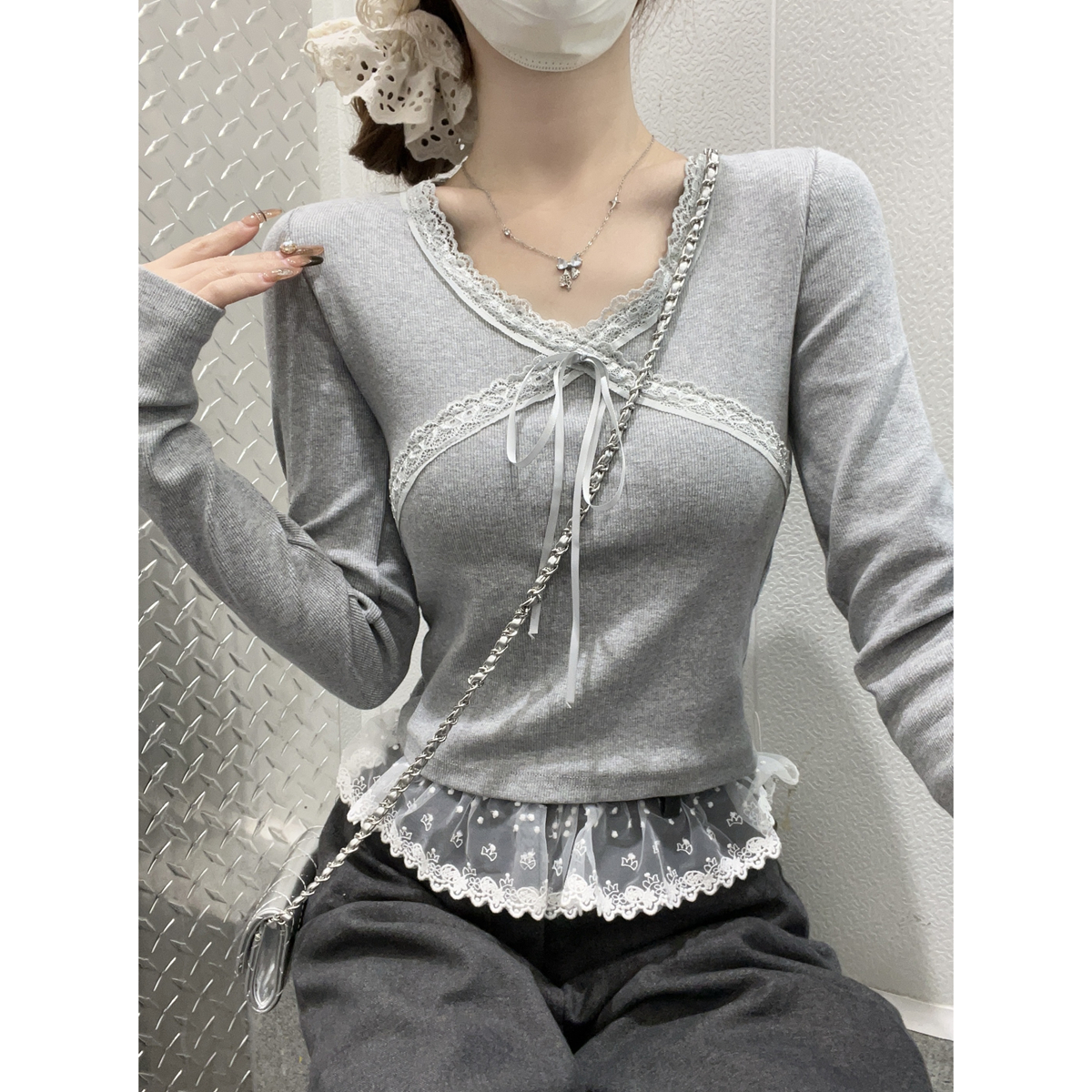 스프링 스프링 한국 슬림 대조적 인 색상 불규칙적 인 슬리밍 2 피스 순수면 내부 긴팔 티셔츠 탑