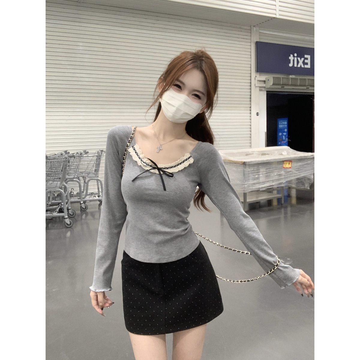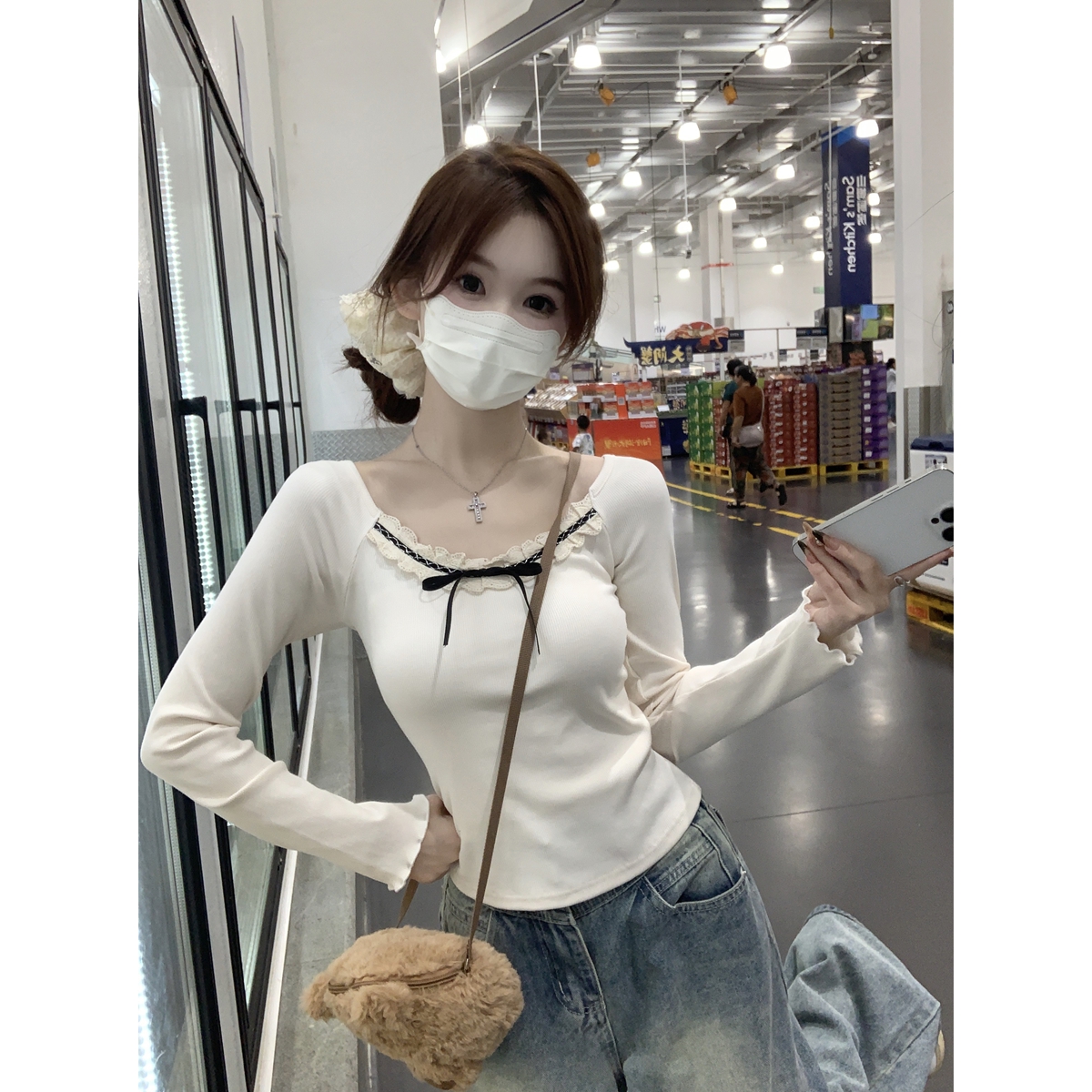 주사 여름 순수 레이스 가장자리 오프 숄더 기질 슬림면 단락 티셔츠 여성을위한