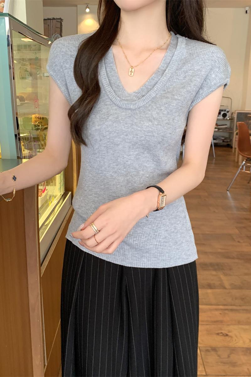 여름 슬림 레이스 레이스 로우 둥근 목 2 피스 레이스 긴팔 티셔츠 탑