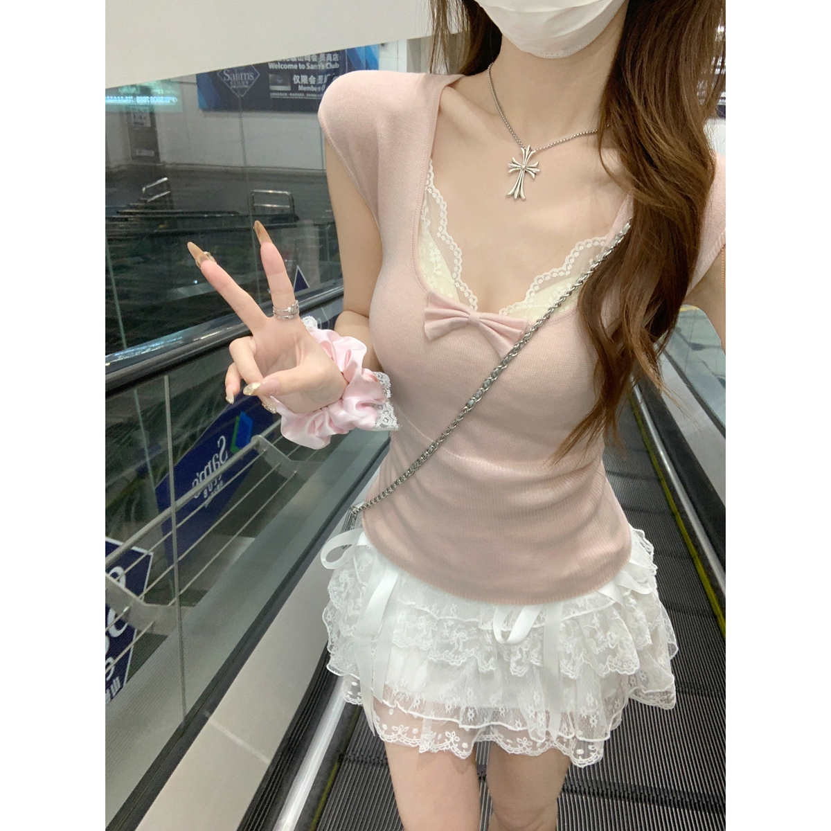 색상 : 살구 핑크 레이스 서스펜더 내부 (가슴 패드 포함) 15539#