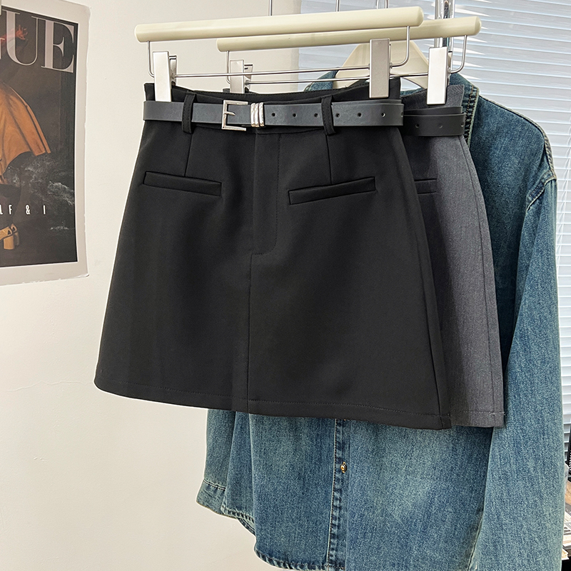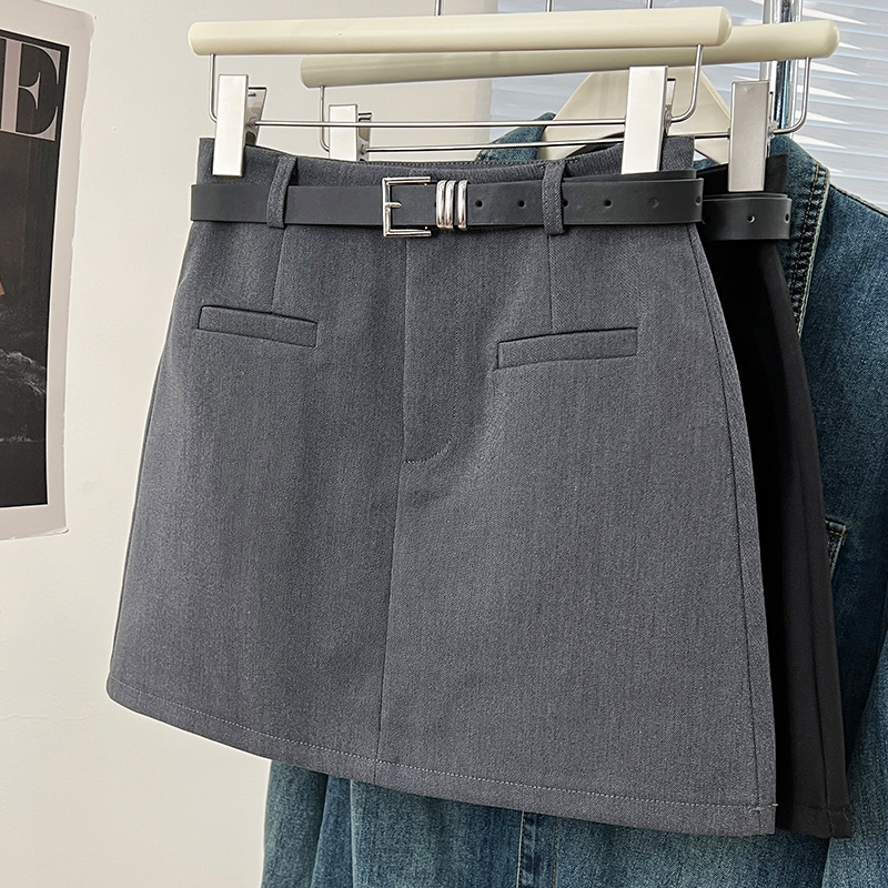 진짜 가격 실제 샷 #Grey 스커트 여성 봄과 가을 작은 사람이 높은 허리 슬림하고 노출 방지 A- 노선 엉덩이 짧은 치마 스커트
