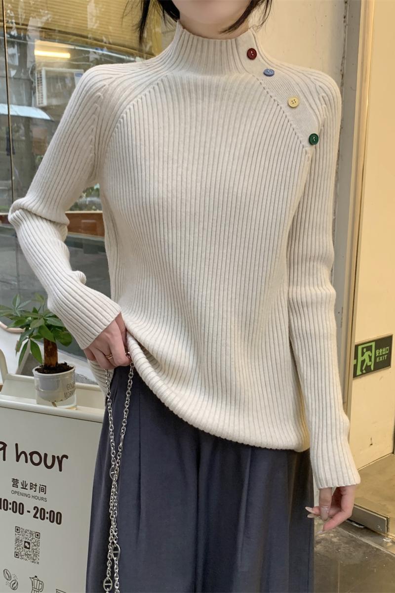 한국 스타일 터틀넥 느슨하고 다재다능한 단일 가슴 북극 벨벳 스웨터 롱 슬리브 스웨터 재킷