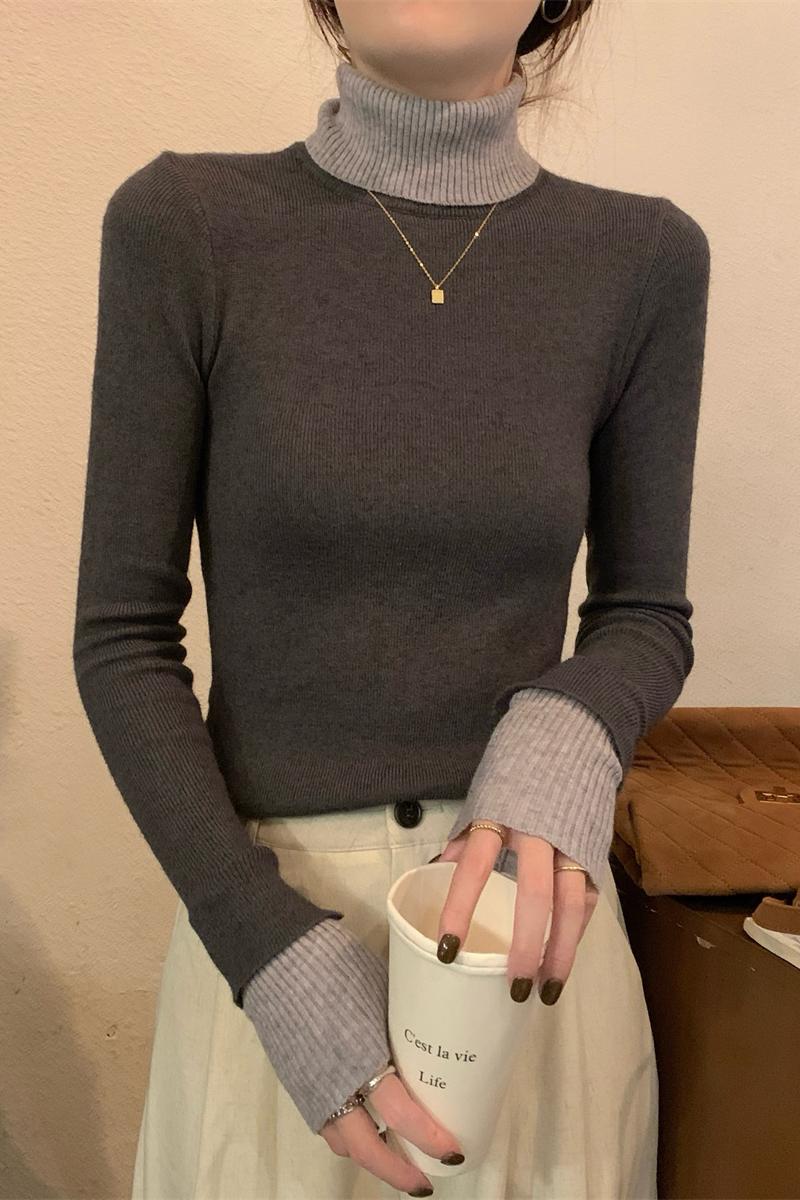 한국 스타일 사각형 넥 슬림 핏 주름 디자인 캐시미어 긴팔베이스 티셔츠 탑