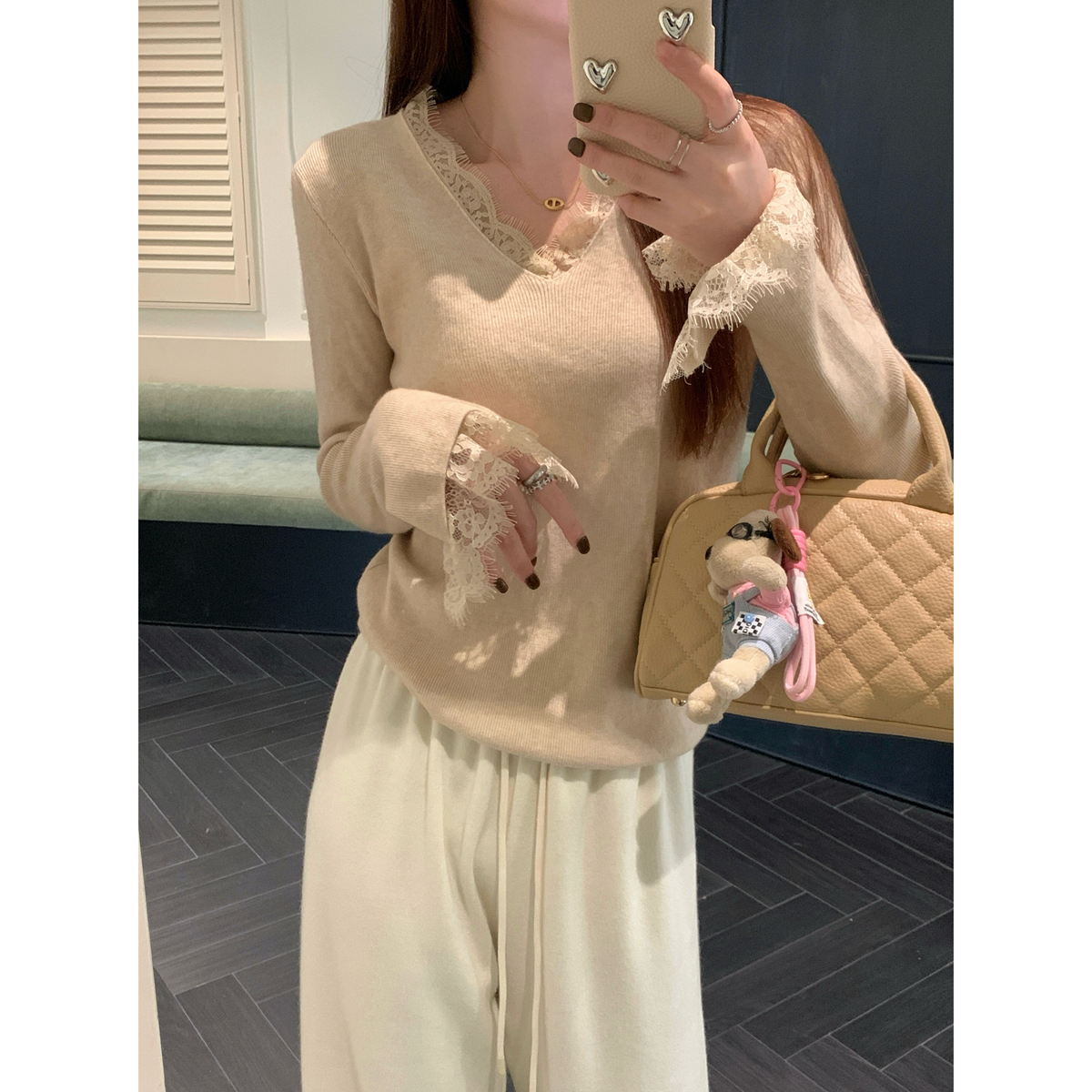 가을 겨울 V- 넥 골드 버튼 트위스트 디자인 북극 벨벳 스웨터 긴 말반 스웨터 재킷