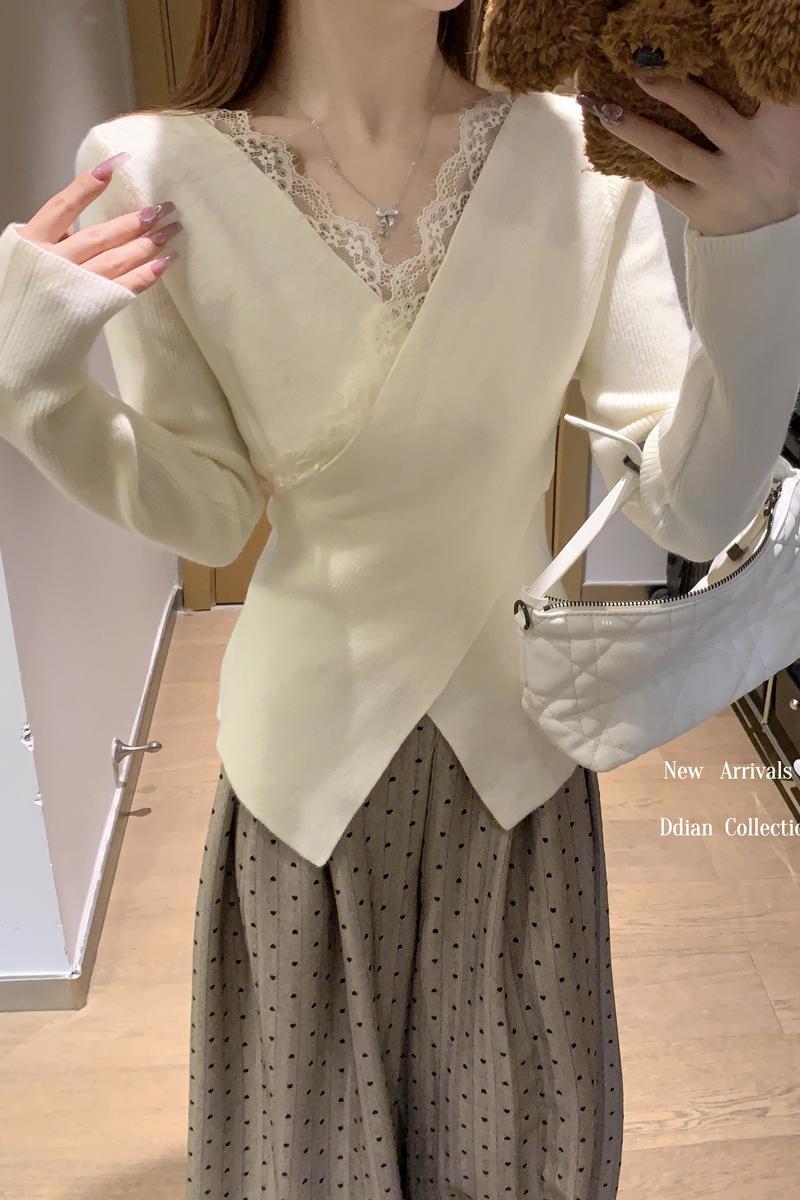 가을 겨울 겨울 한국 스타일 칼라 불규칙한 주름 기질 앤디 벨벳 스웨터 긴 소매베이스 스웨터