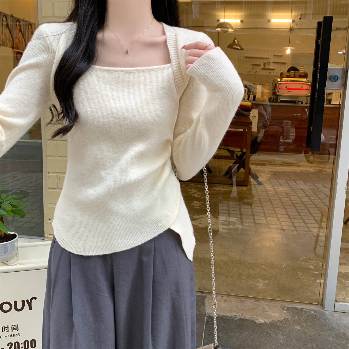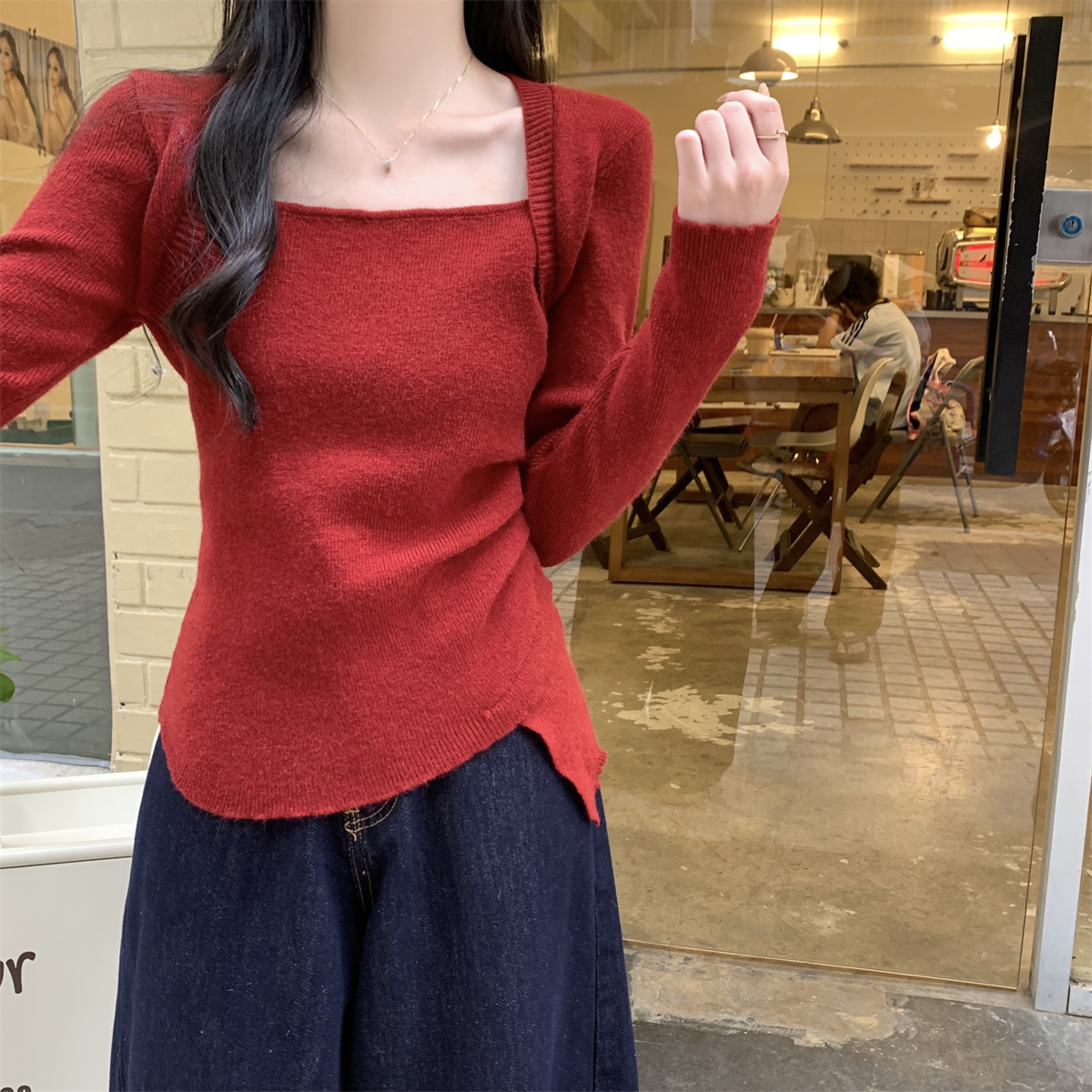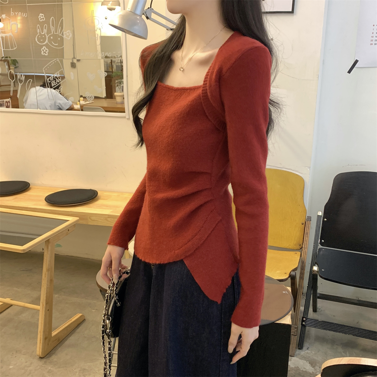 가을 겨울 한국 스타일 느슨한 둥근 목 라즈 숄더 앤디 벨벳 스웨터 롱 슬리브베이스 스웨터 여자 탑