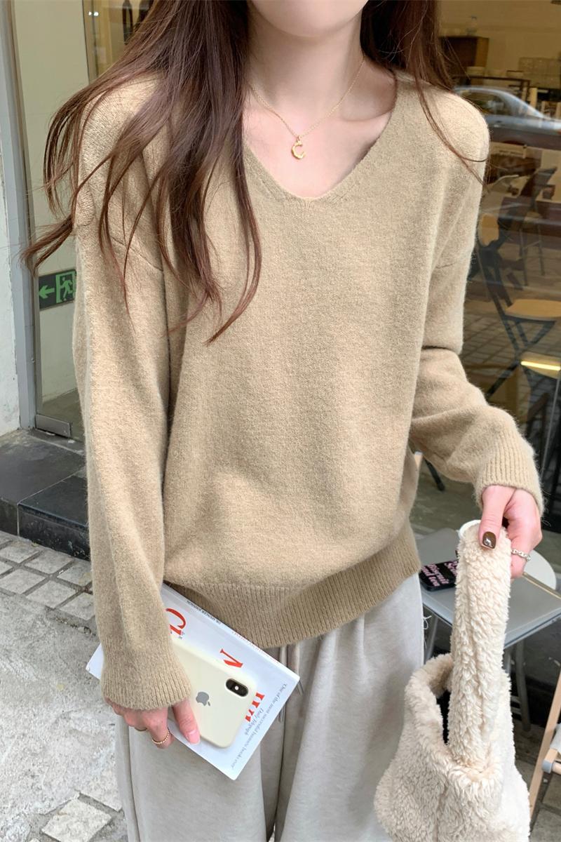 V-Neck Stripes 가을 겨울 주름 슬림 캐시미어 울 클립 플로우 롱 슬리브 티셔츠 탑