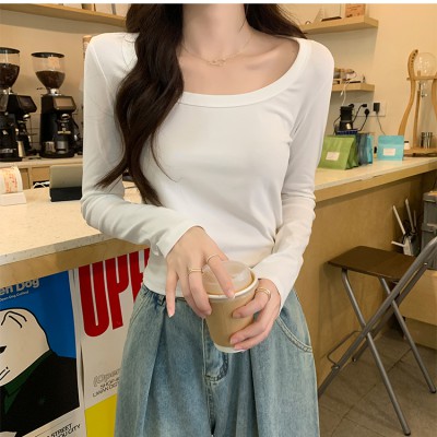 스퀘어 칼라베이스 셔츠 이른 가을에 여성을위한 긴팔 티셔츠 새로운 고급 기질 내부 슬림 한 몸매