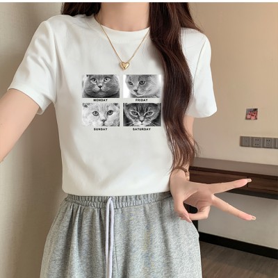 여성용 직선 어깨 짧은 소매 티셔츠 여름 레트로 아메리칸 인쇄 핫 소녀 여성용 짧은 탑 캐주얼