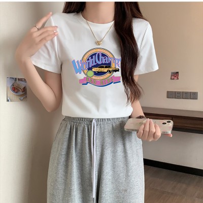 미국식 스타일의 프론트 어깨 단락 티셔츠 여름 디자인, 허리 껴안기 및 슬리밍 독특한 짧은 탑 캐주얼