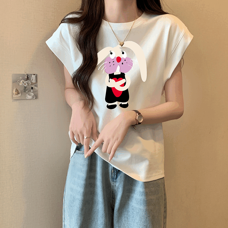 슬림하고 직선 어깨 소매 소매 티셔츠 여성을위한