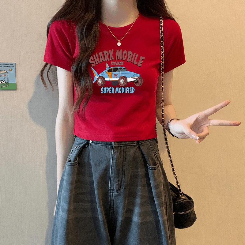 여름 디자인 및 인쇄 된 작은 티셔츠 슬림 한 짧은 여름 인쇄