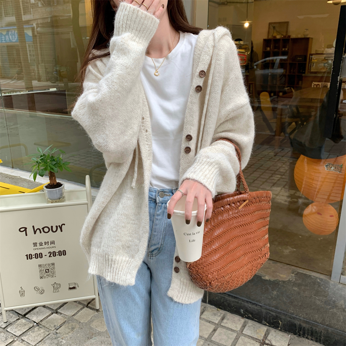 가을 겨울 대조 컬러 v- 넥 단일 브레스트 디자인 앤디 벨벳 스웨터 가디건 스웨터 재킷