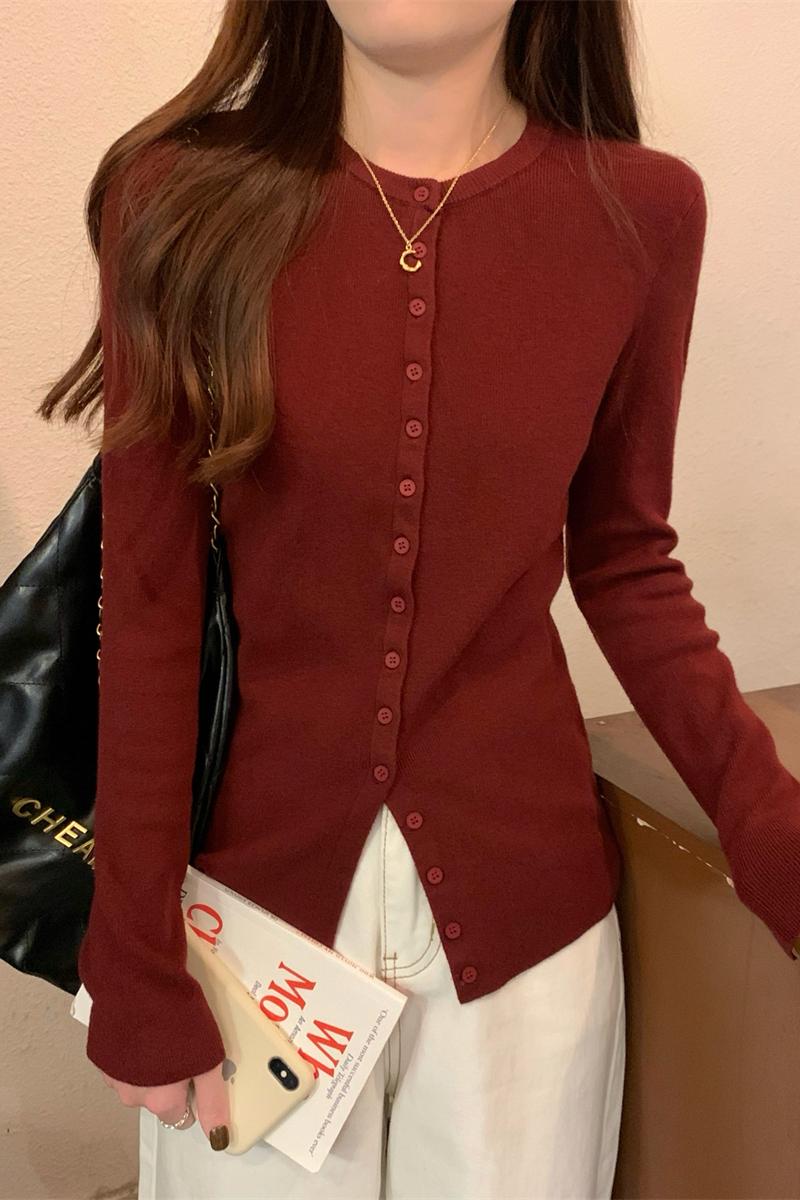 가을 겨울 한국 스타일 슬림 정사각형 고리 뼈 디자인 기질 긴팔베이스 티셔츠 여성