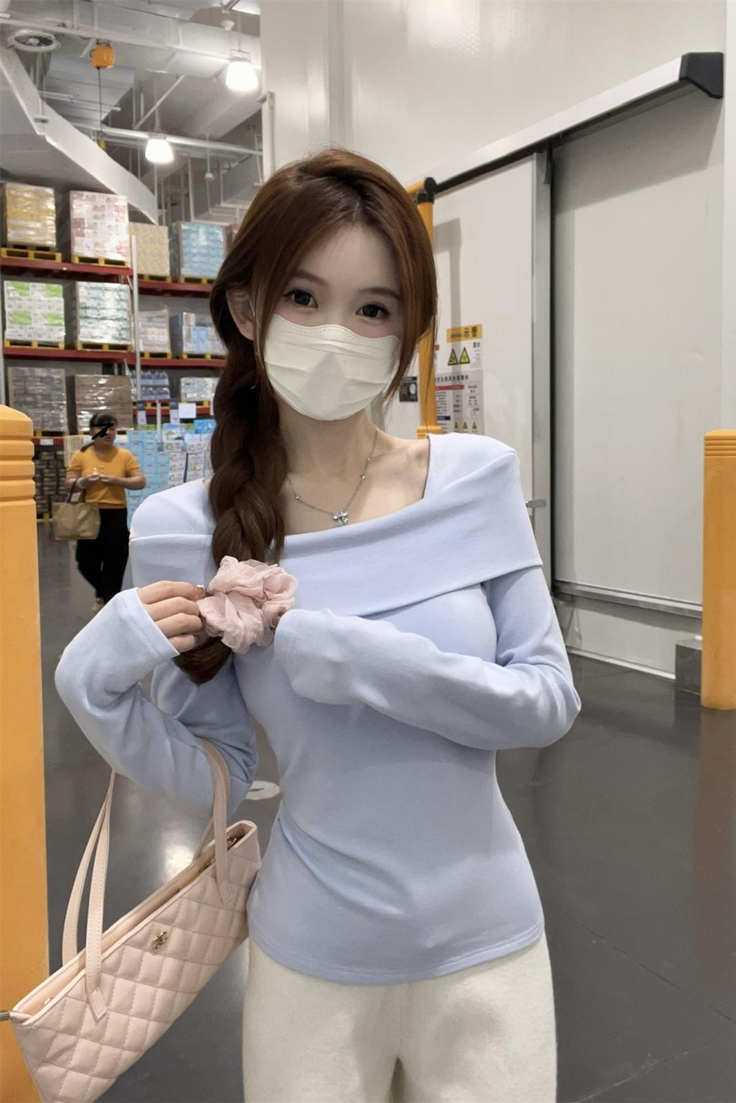 라운드 넥 색상 조합 한국어 버전 간단한 사랑 자수 긴 소매베이스 티셔츠 탑