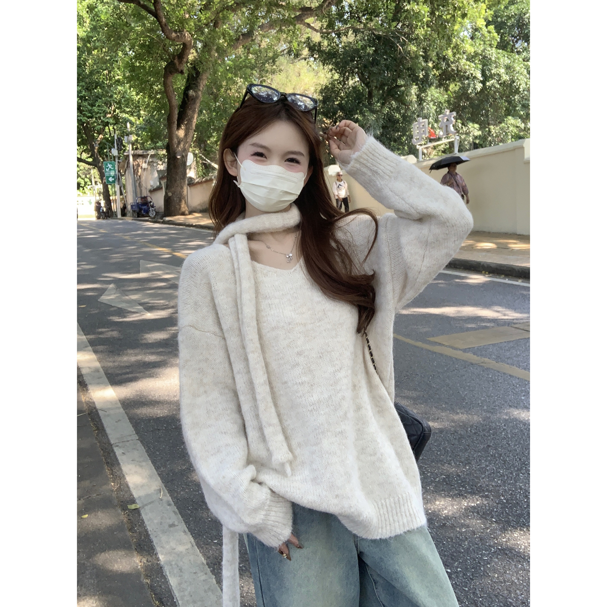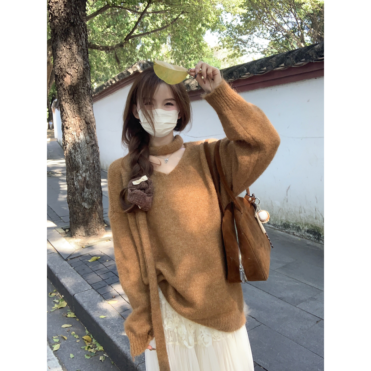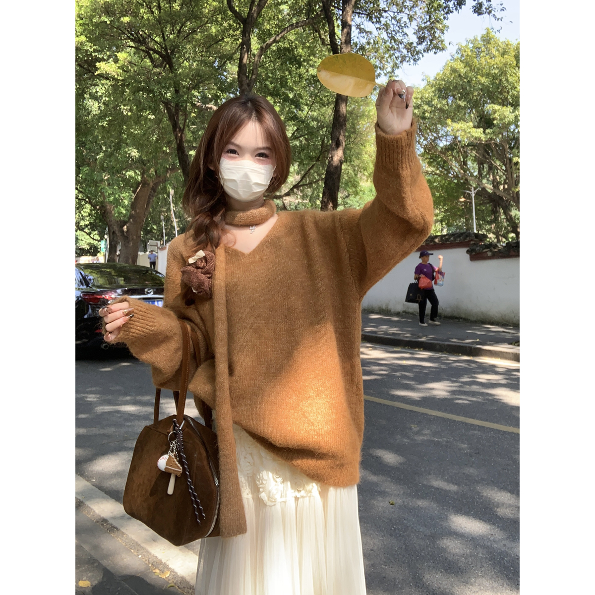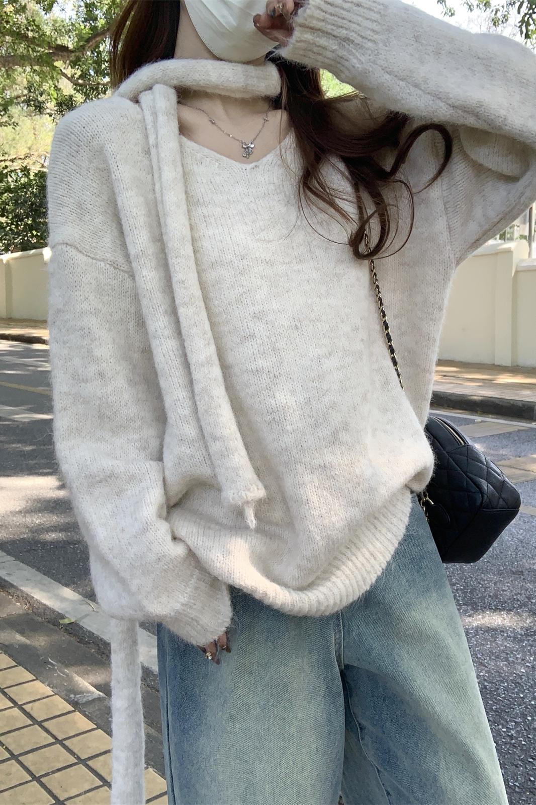 한국 스타일 느슨한 후드가있는 게으른 길이 모헤어 니트 스웨터 긴 소매 스웨터 재킷