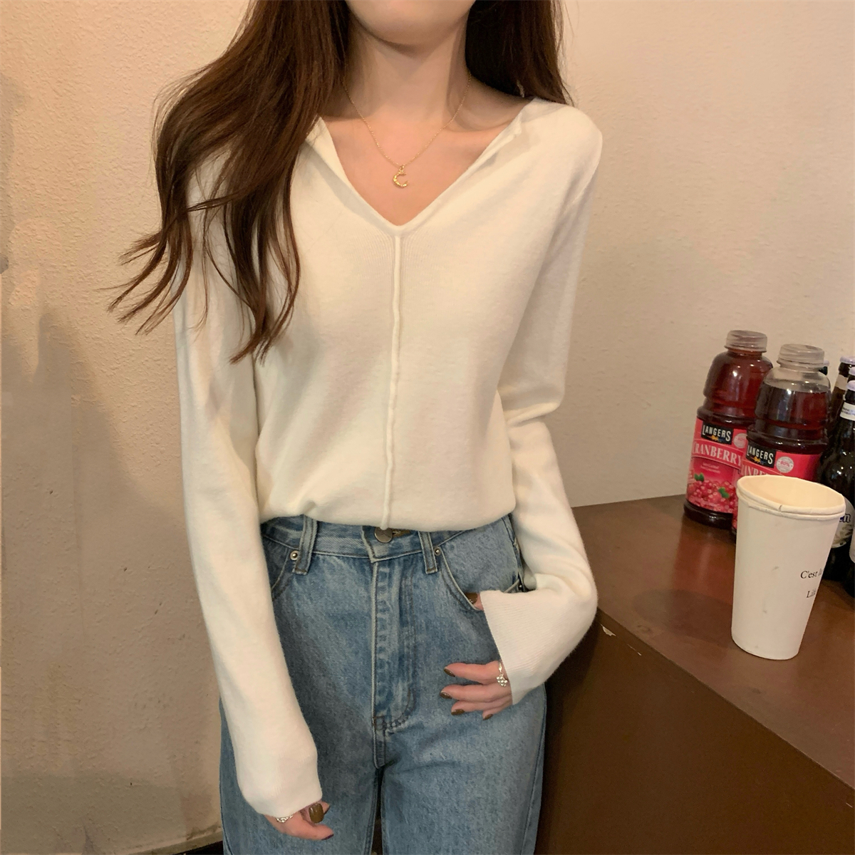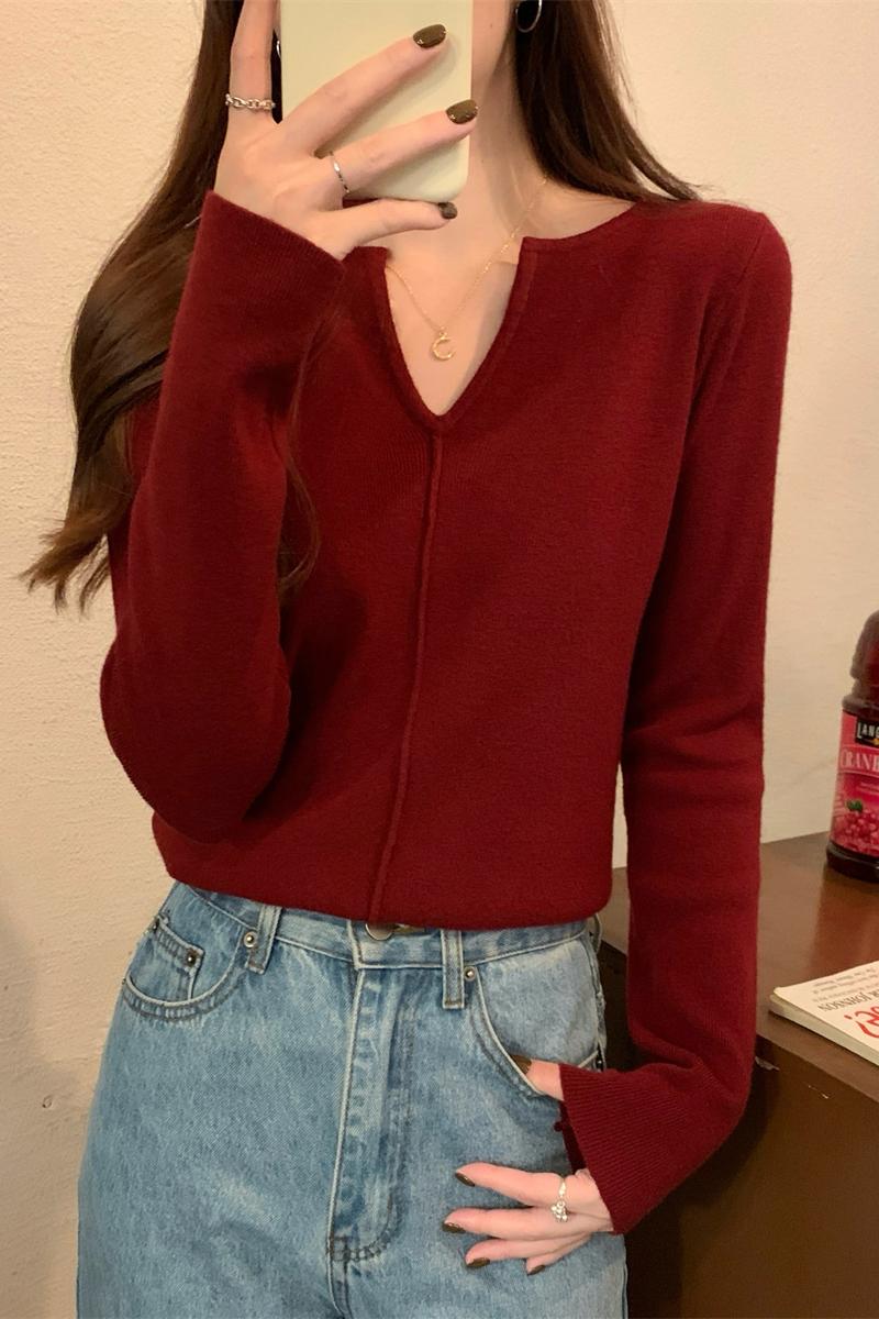 긴팔 스웨터를 가진 여성을위한 한국 스타일 느슨한 둥근 목 북극 벨벳 짧은 간단한 니트 스웨터