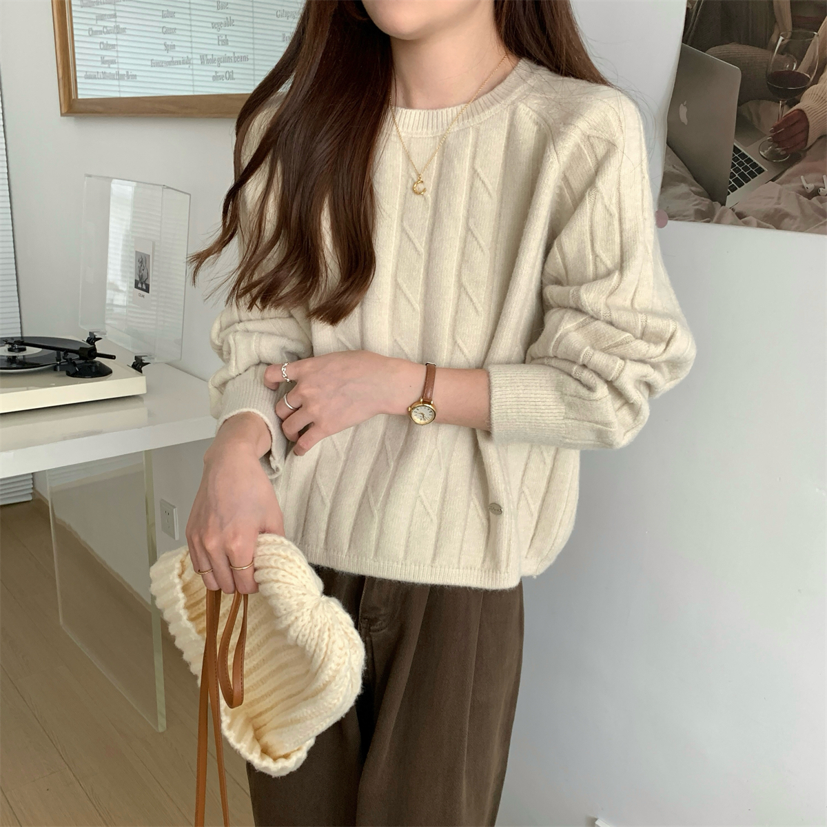 한국 스타일 느슨한 중공 자카드 디자인 앤디 벨벳 스웨터 여성용 긴팔 스웨터 재킷