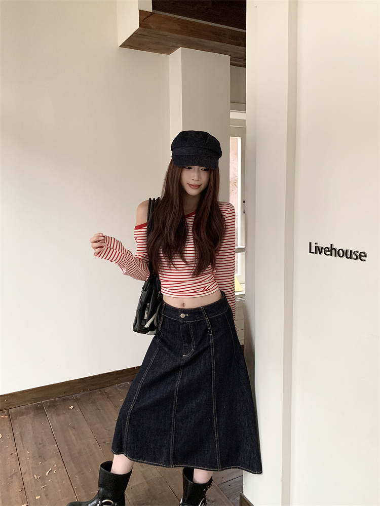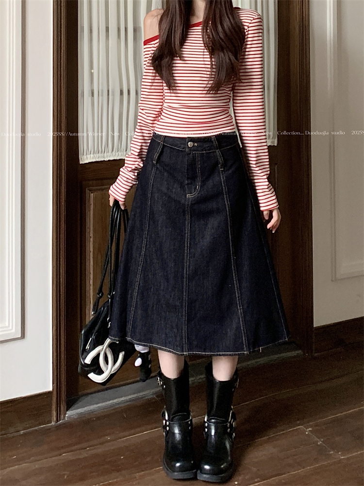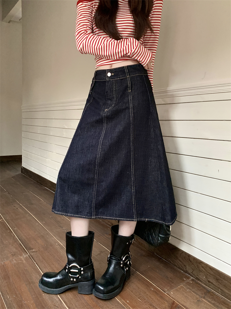 진짜 샷, 실제 가격 ~ 새로운 레트로 다목적 피쉬 테일 데님이 높은 허리 A- 라인 슬림하고 느슨한 미디 스커트를 가진 여성을위한 스커트