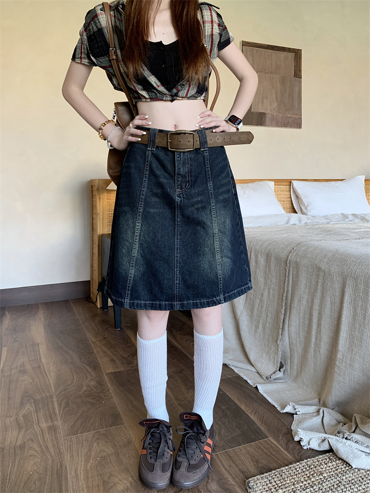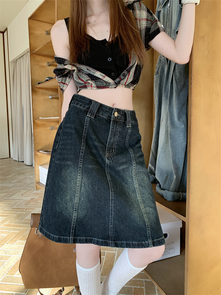 실제 샷과 실제 가격 ~ 미국 슬림하고 다재다능한 데님 피쉬 테일 스커트 새로운 느슨한 레트로 올드 하이 웨이스트 A- 라인 스커트