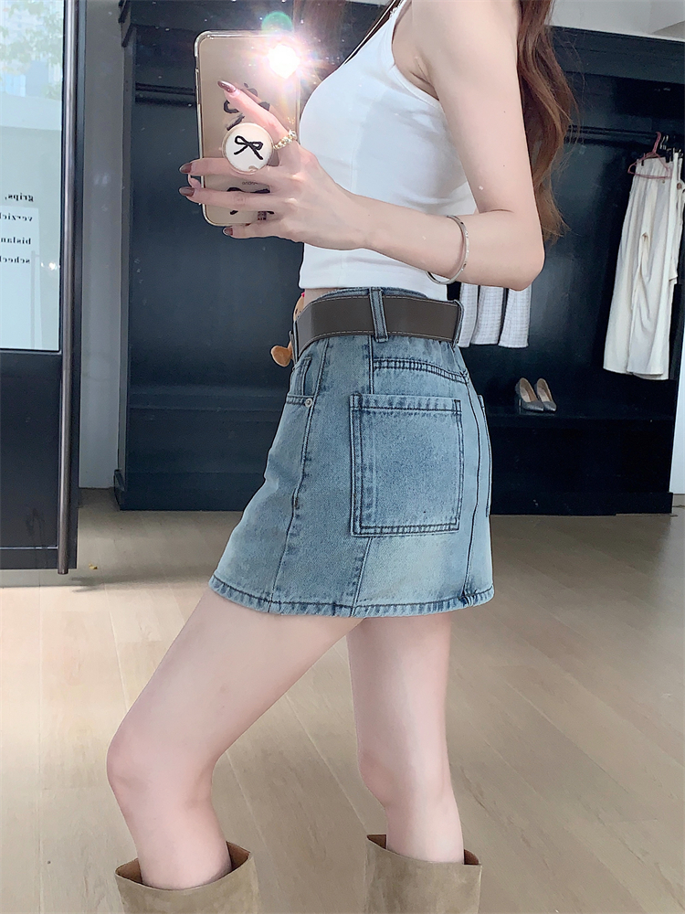 진짜 샷, 실제 가격 ~ 여성의 새로운 하이 웨이스트 핫 소녀 A- 라인 힙 스커트 내부 안감