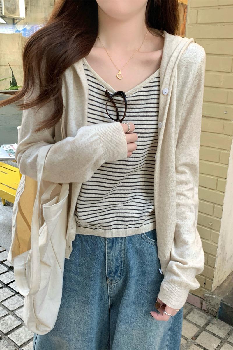 가을 겨울 버전 느슨한 대조적 인 색상 후드 게으른 6 양모 스웨터베이스 긴 소매 스웨터