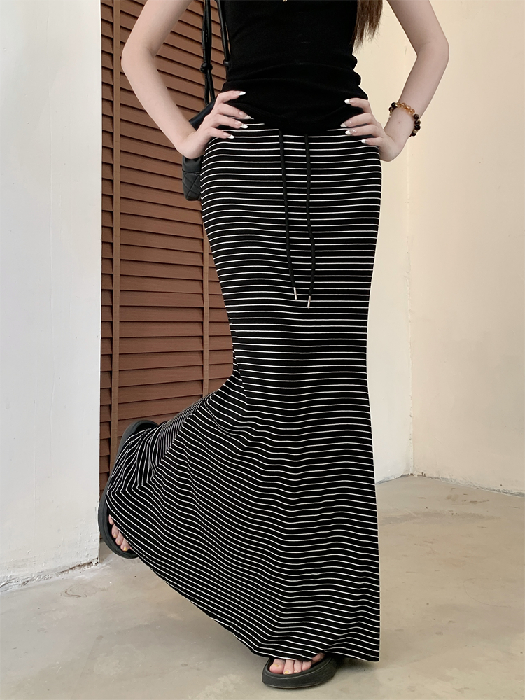실제 뜨거운 여자 여자를위한 다목적 기질 스커트 새로운 하이 허리 슬림 한 줄무늬 낚시 쥐가 가득한 긴 치마