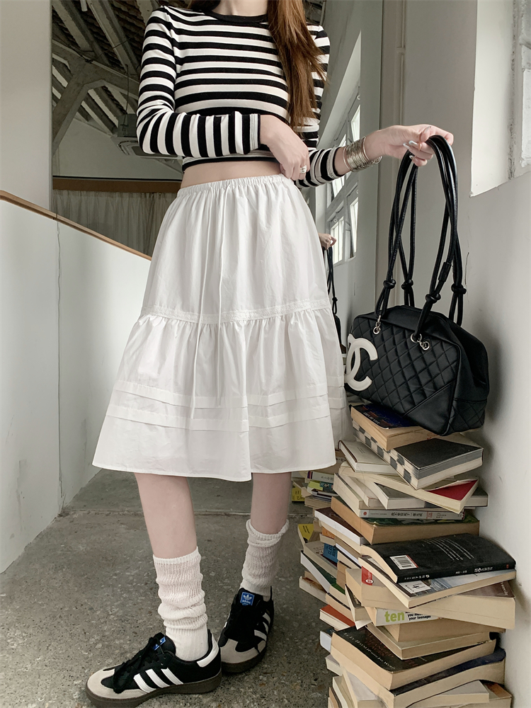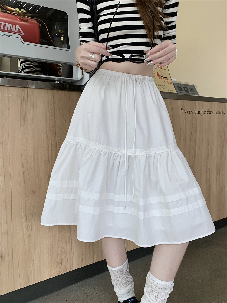 진짜 샷, 진짜 가격 ~ 여자의 새로운 하이 웨이스트 A- 라인 푹신한 다목적 미디 스커트를위한 달콤한 우유 스타일 로맨틱 한 소녀 스커트