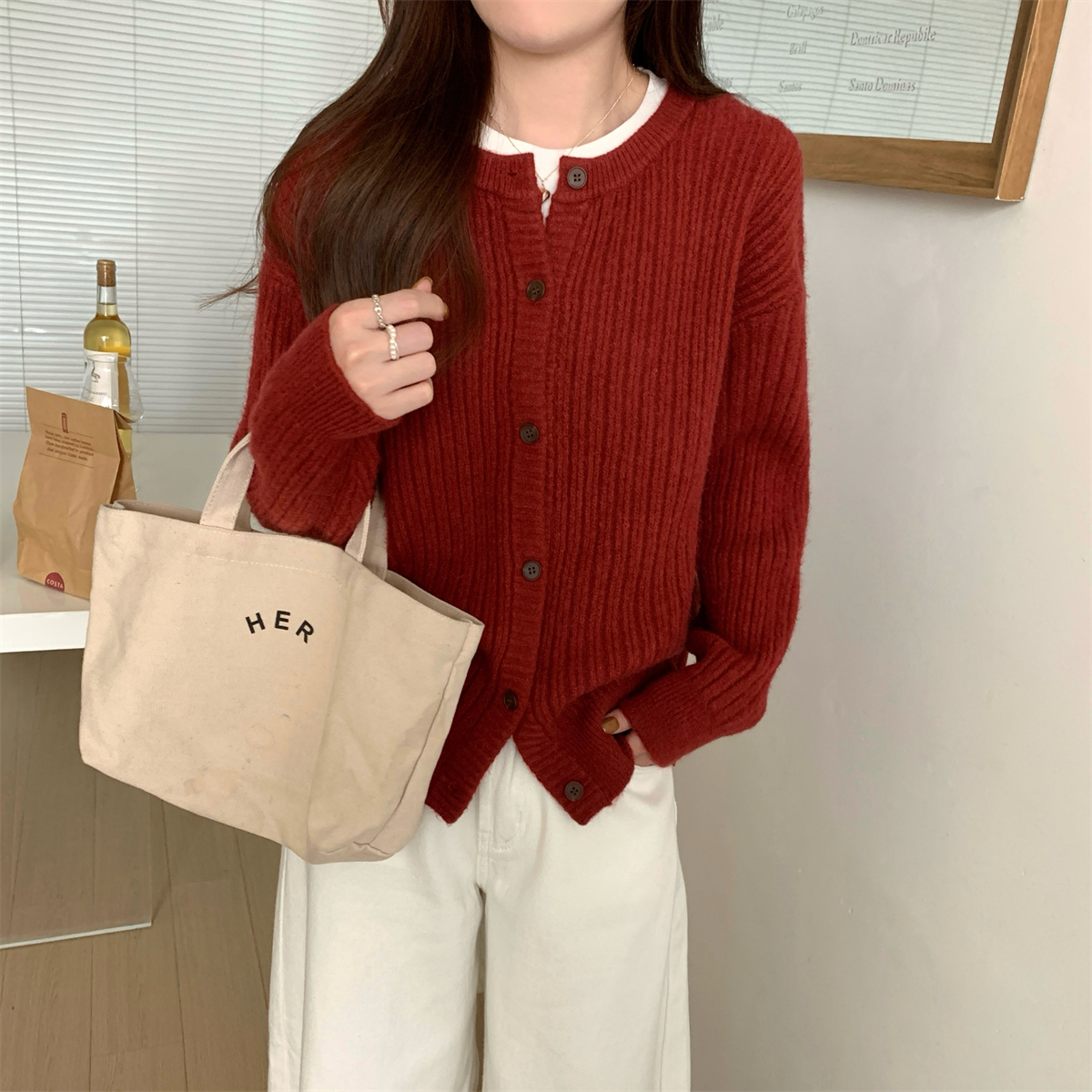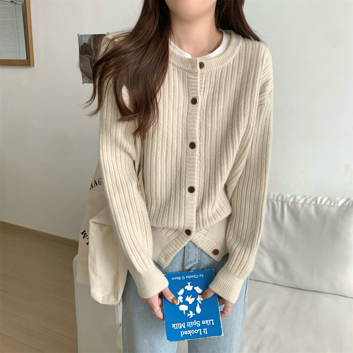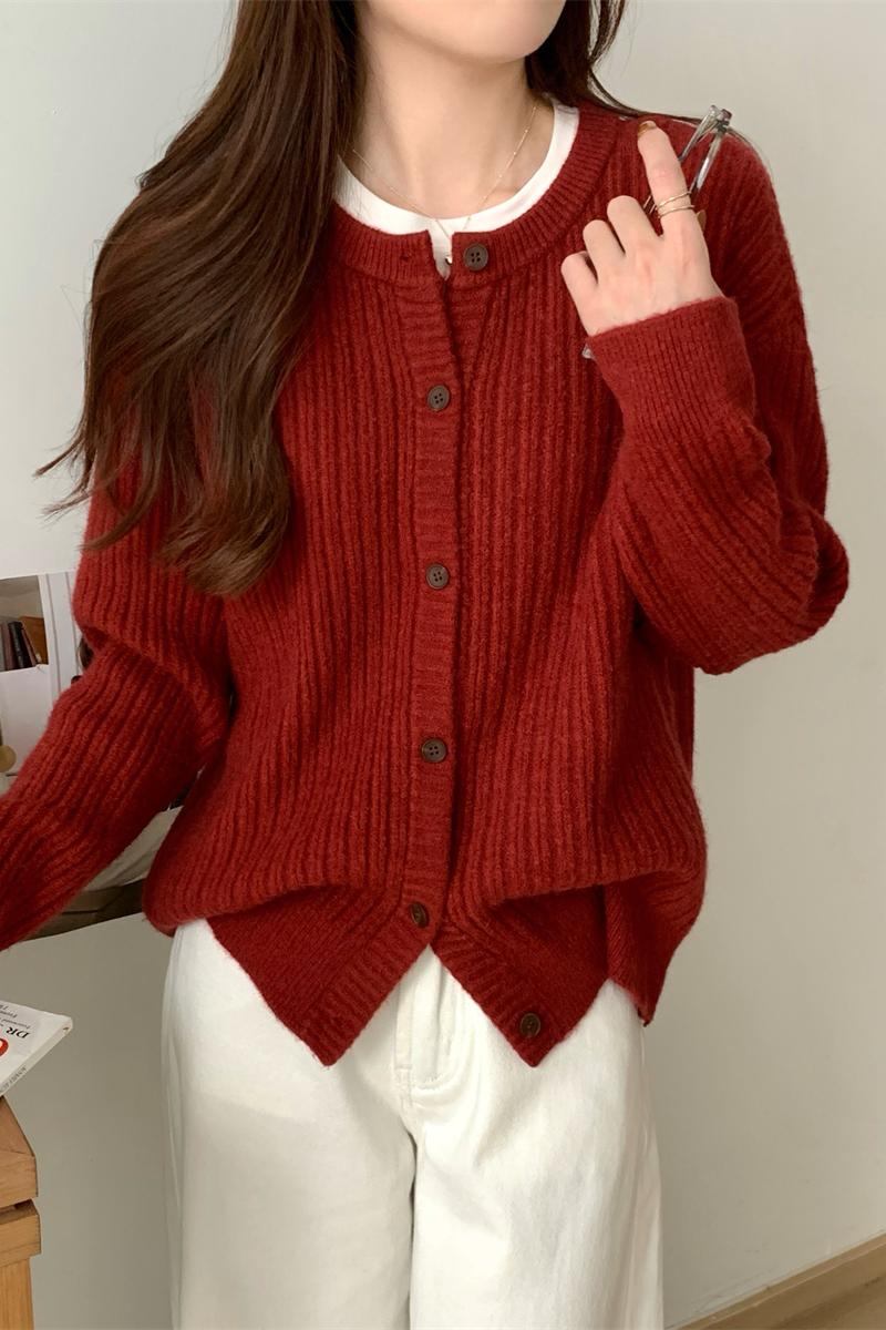 한국 스타일 스퀘어 칼라 버튼 디자인 앤디 벨벳 슬림 스웨터 기반 긴 소매 스웨터