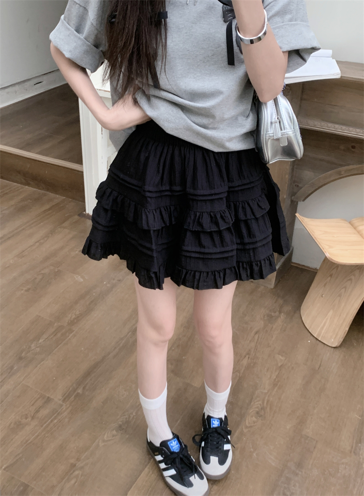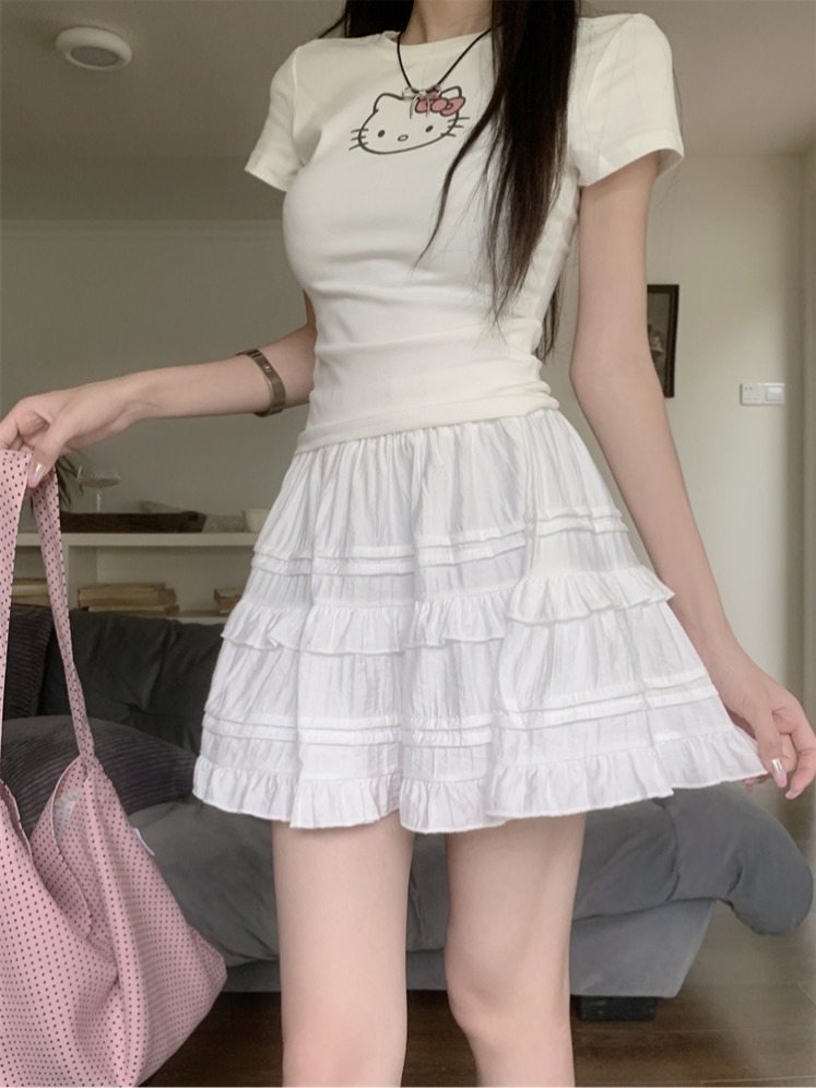 진짜 샷, 진짜 가격 ~ 발레 스타일 여성을위한 흰색 탄성 허리 케이크 스커트 새로운 스타일 작은 푹신한 짧은 치마