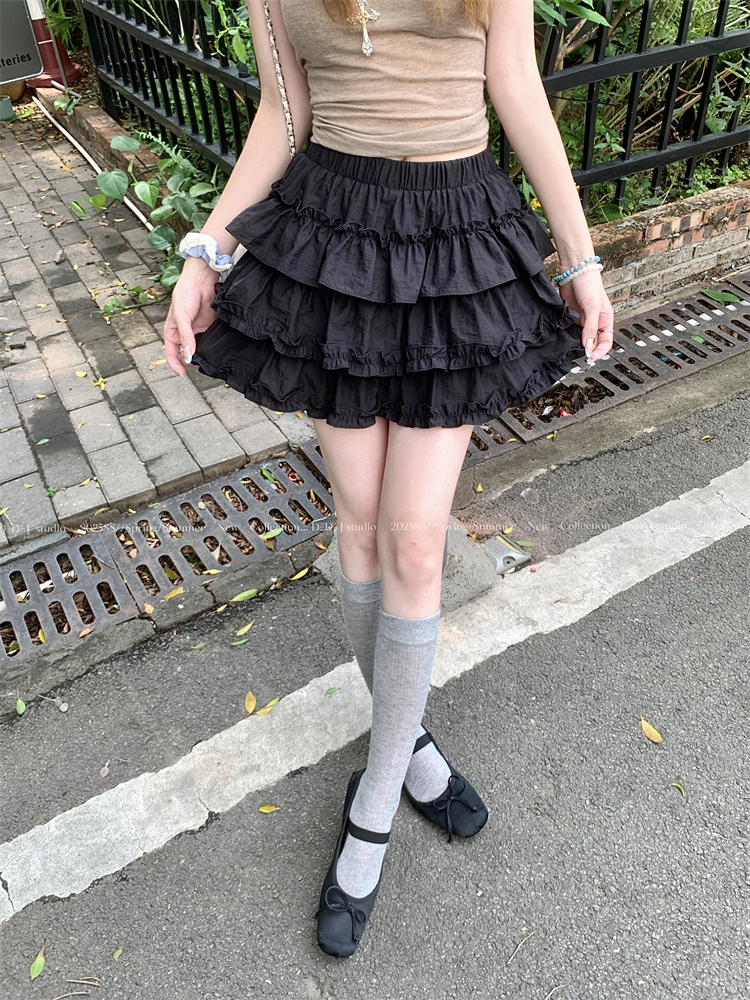 실제 사진과 실제 가격 ~ 발레 스타일 케이크 스커트 여성의 새로운 하이 웨이스트 A- 라인 작은 소녀의 다목적 푹신한 치마