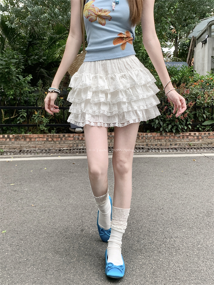 진짜 샷 실제 가격 순수한 미추어 진한 발레 스타일 레이스 케이크 스커트 여성을위한 새로운 하이 웨이스트 A- 라인 작은 푹신한 짧은 치마
