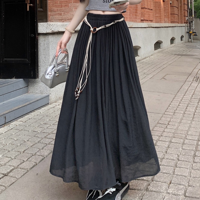 진짜 샷, 실제 가격 ~ 새로운 중국 스타일의 면화면과 린넨 스커트 여름에 여성을위한 새로운 게으른 줄기 큰 A- 라인 긴 치마