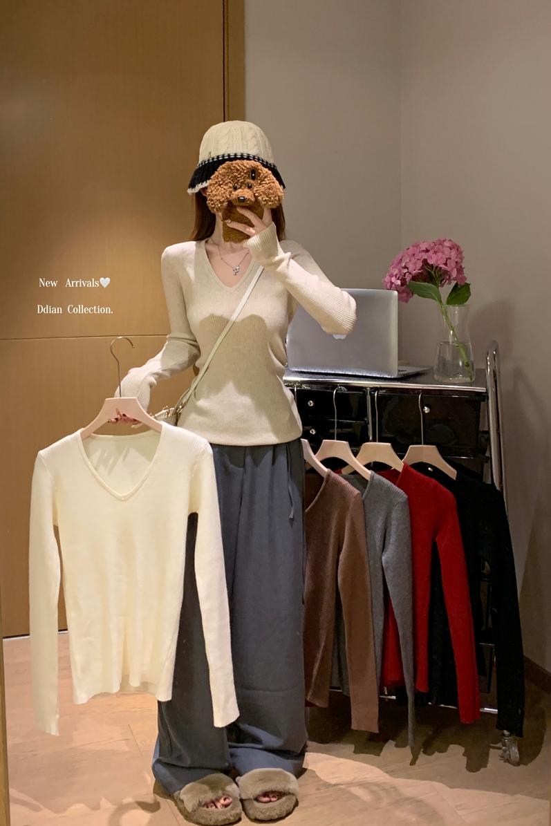 가을 겨울 느슨하고 달콤한 대조적 인 색상 디자인 감각 북극 벨벳 스웨터 속옷 스웨터 탑