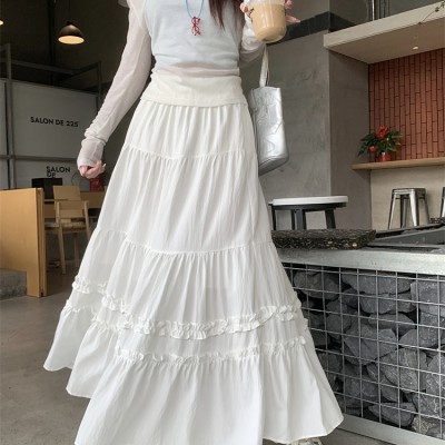 흰색 검은 귀가 여성의 새로운 고위 슬림 한 A- 라인 미드 길이 케이크 스커트를위한 달콤한 스타일 치마