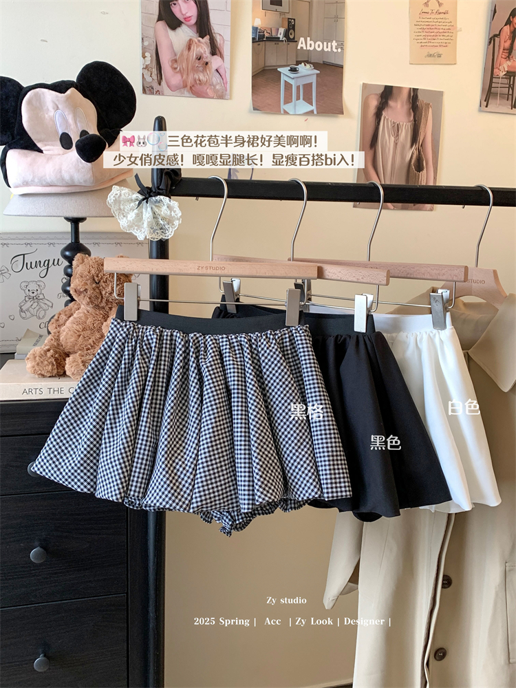 진짜 샷, 실제 가격 ~ 대조적 인 색채 격자 무늬 한국 연령 감소 푹신한 치마, 노출 방지 다목적 슬림 한 꽃 새싹 스커트, 짧은 치마