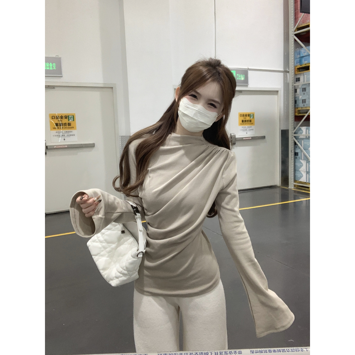 가을 겨울 순수한 경사 끈 꽃 디자인 앤디 벨벳 스웨터베이스 스웨터