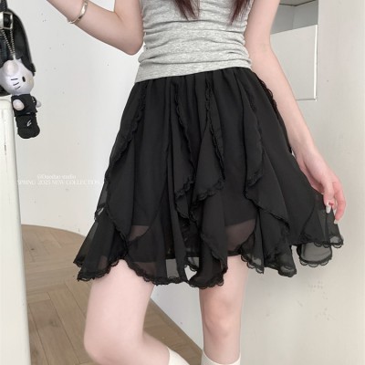 실제 샷 및 실제 가격 ~ 여성용 고위용 A- 라인 다목적 짧은 치마를위한 중장기 레이스 스 플라이 싱 불규칙한 치마