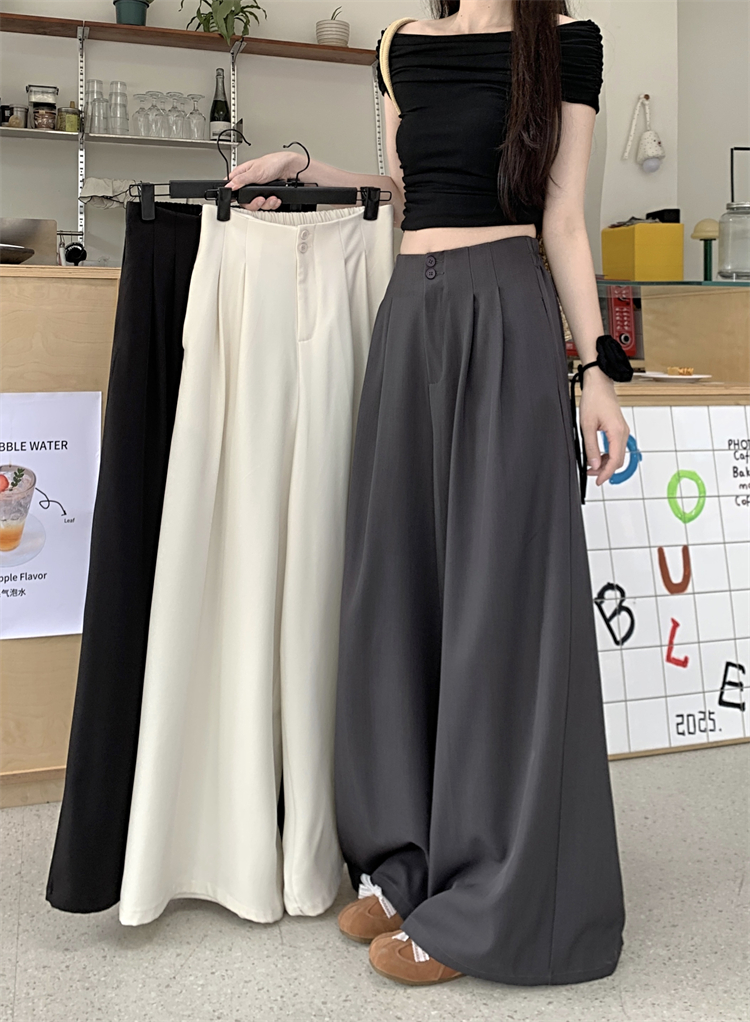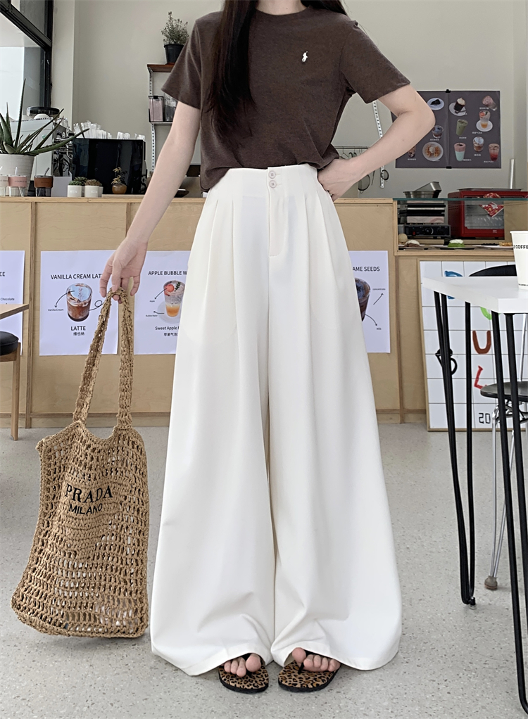 여성의 새로운 디자인을위한 실제 고가의 고가의 고급 슈트 넓은 다리 바지 하이 웨이스트 처진 느슨한 캐주얼 바닥 바지
