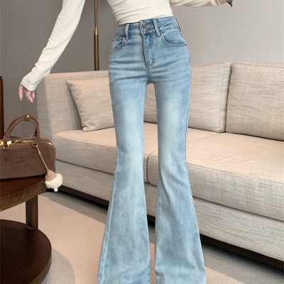여성의 새로운 하이 웨이스트 슬림하고 신축성있는 바닥 바지를위한 봄 슬림 청바지