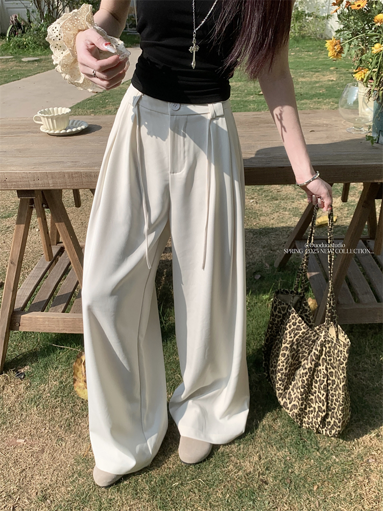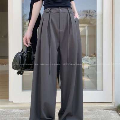 여성의 새로운 디자인을위한 실제 고가의 고가의 고급 슈트 넓은 다리 바지 하이 웨이스트 처진 느슨한 캐주얼 바닥 바지