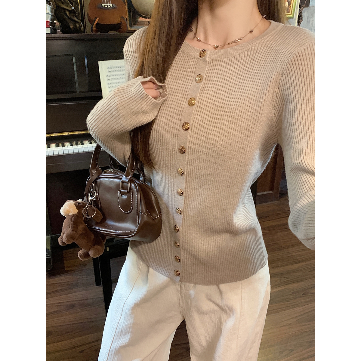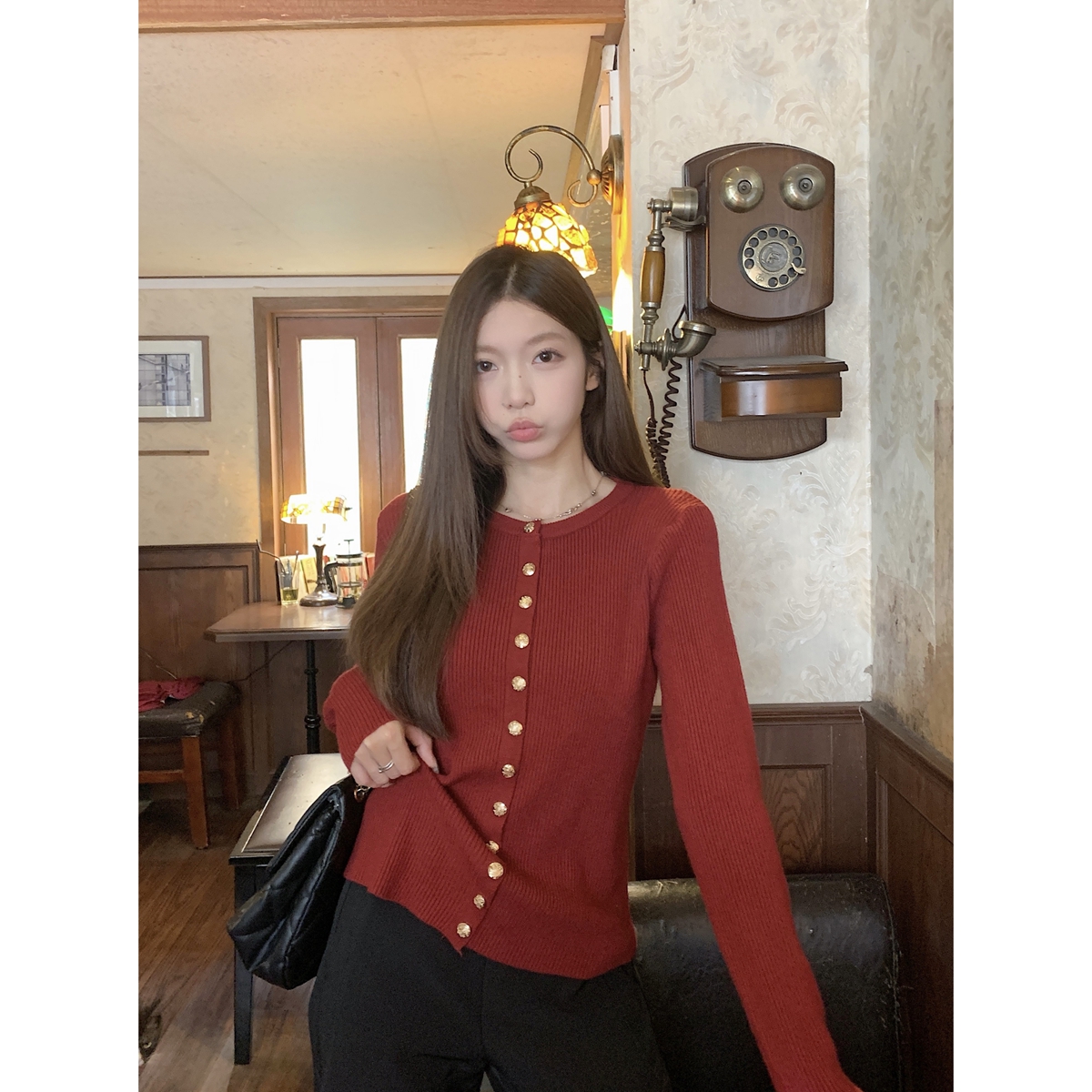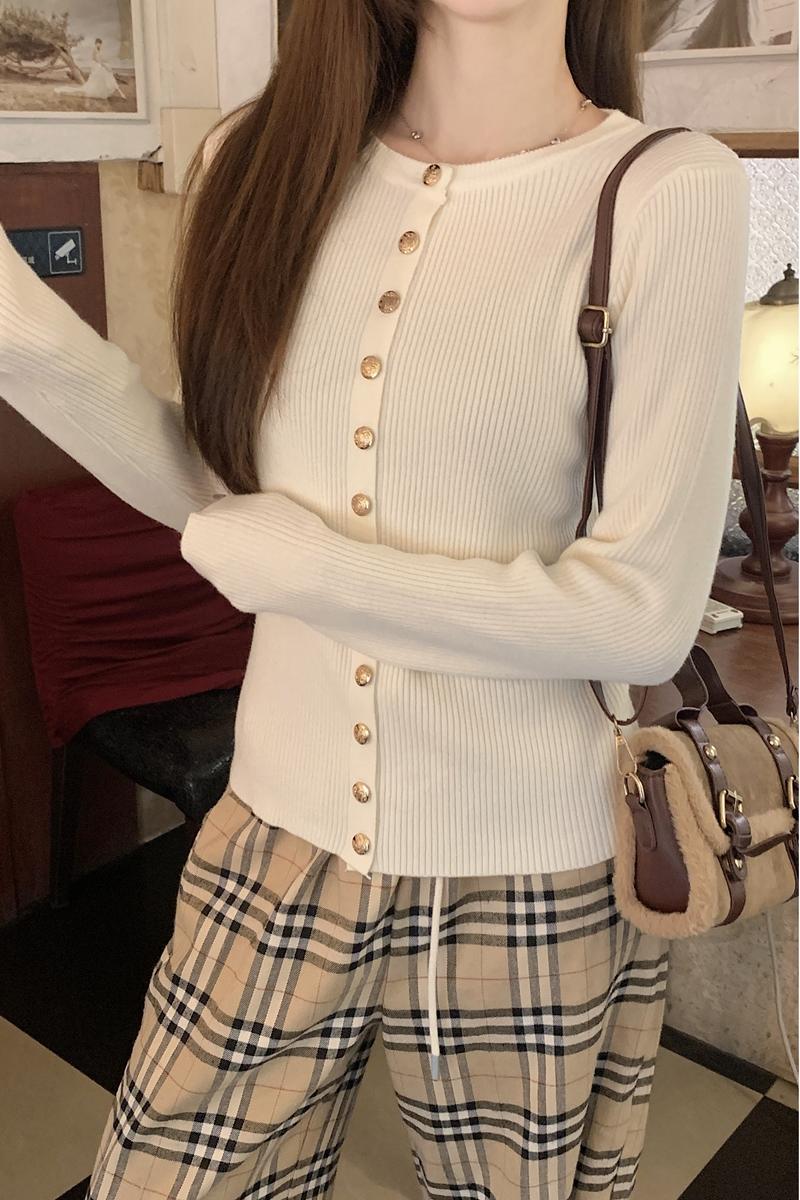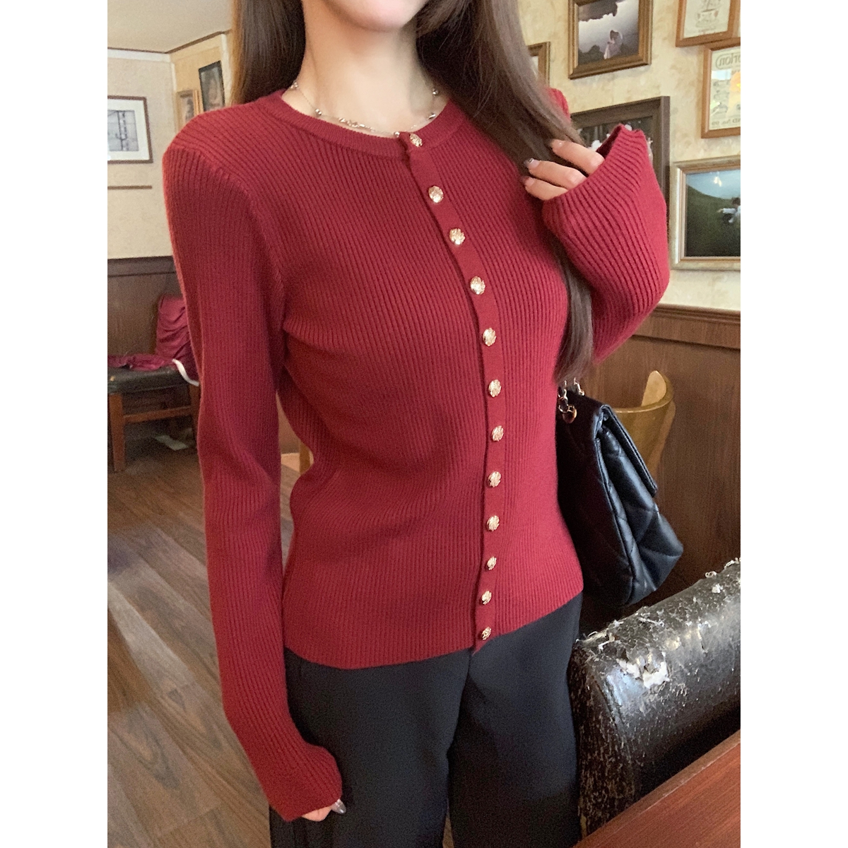 가을 겨울 한국 스타일 슬림 대조 대조 반 오픈 칼라 버튼 디자인 6 양모 스웨터베이스 스웨터