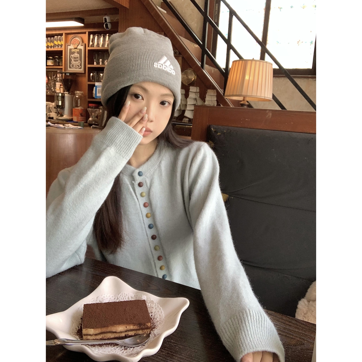 한국 스타일 느슨한 무지개 버튼이있는 북극 벨벳 스웨터 롱 슬리브 스웨터 재킷 탑
