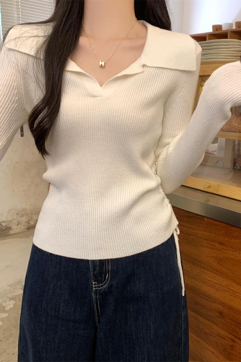 가을 겨울 U-Neck 대비 색상 슬림 한 9 양모 기질 스웨터베이스 긴팔 스웨터 탑